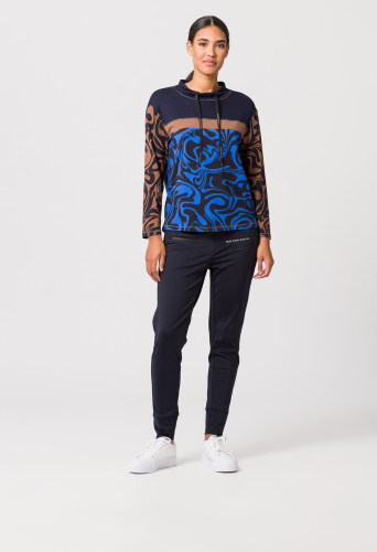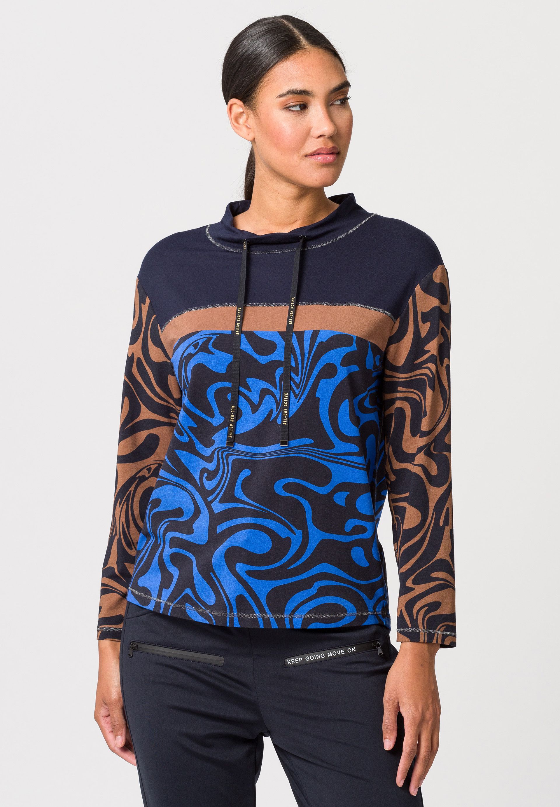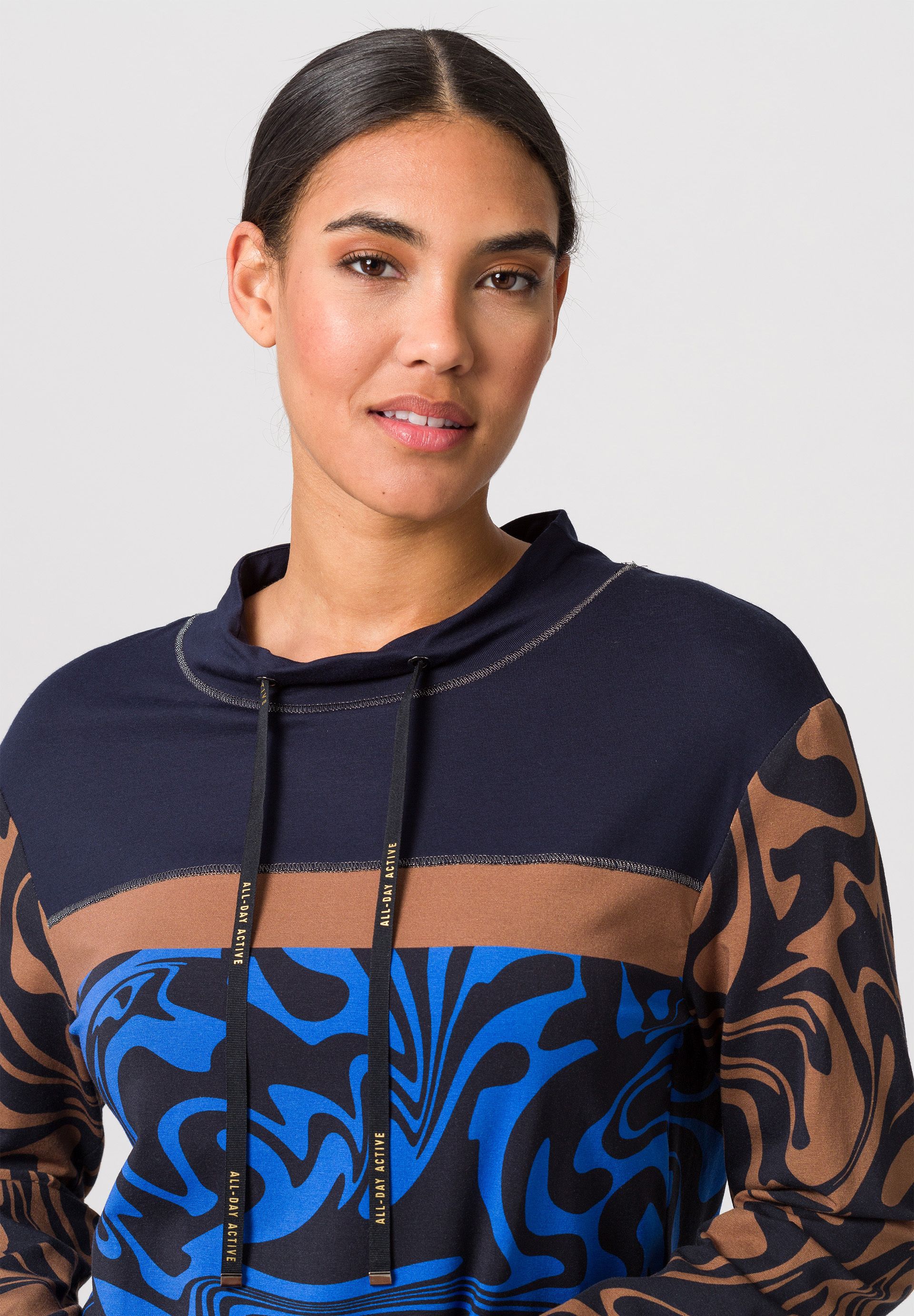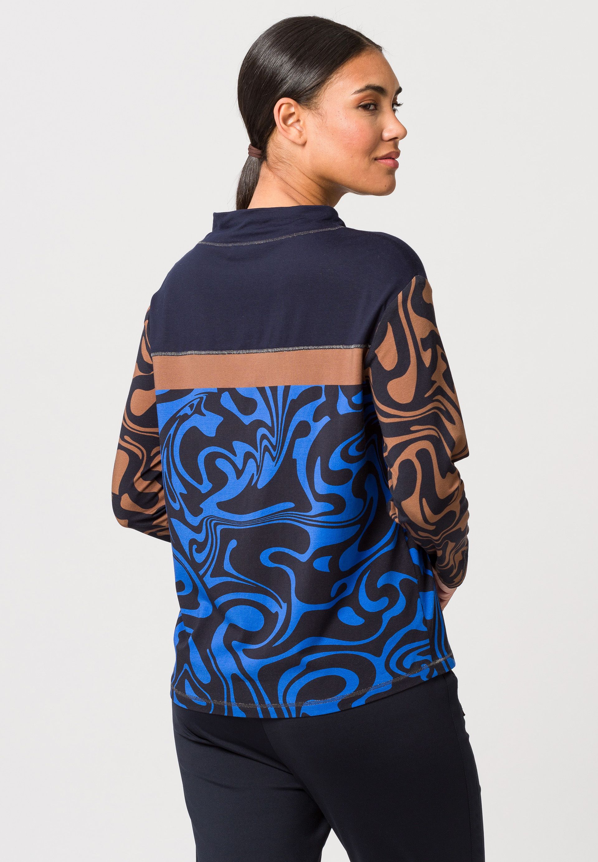 Рубашка с принтом по всей поверхности и металлизированными швами. В дополнение к эффектному узору по всей поверхности эта модель из мягко струящегося джерси из хлопка также имеет блестящие металлические оверлочные швы и кулиску с принтом на воротнике-стойке на шее для тех, кто следит за стилем.