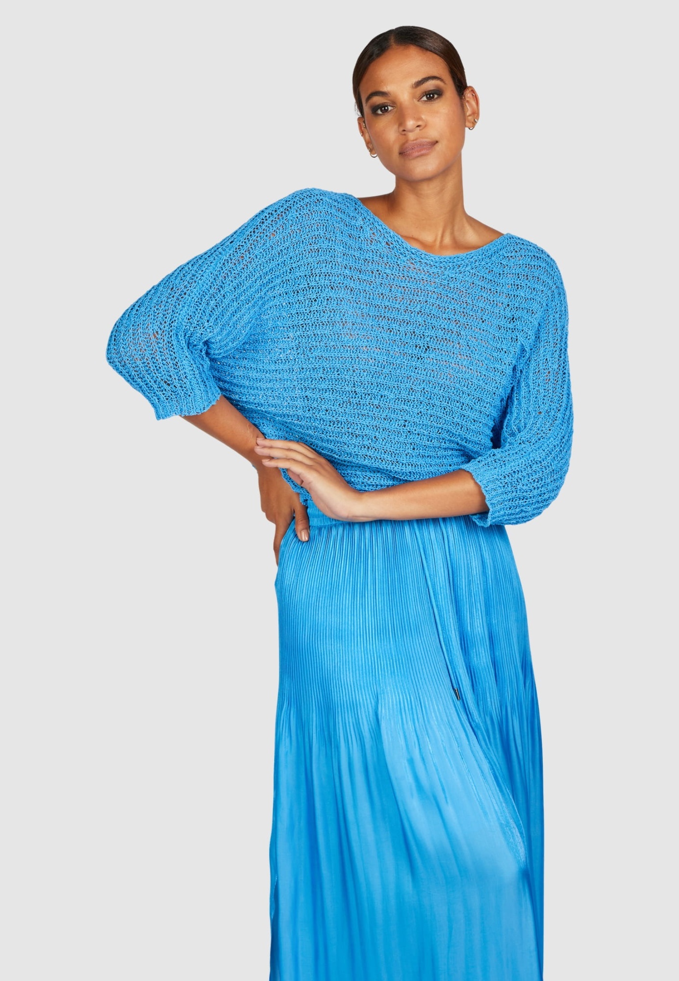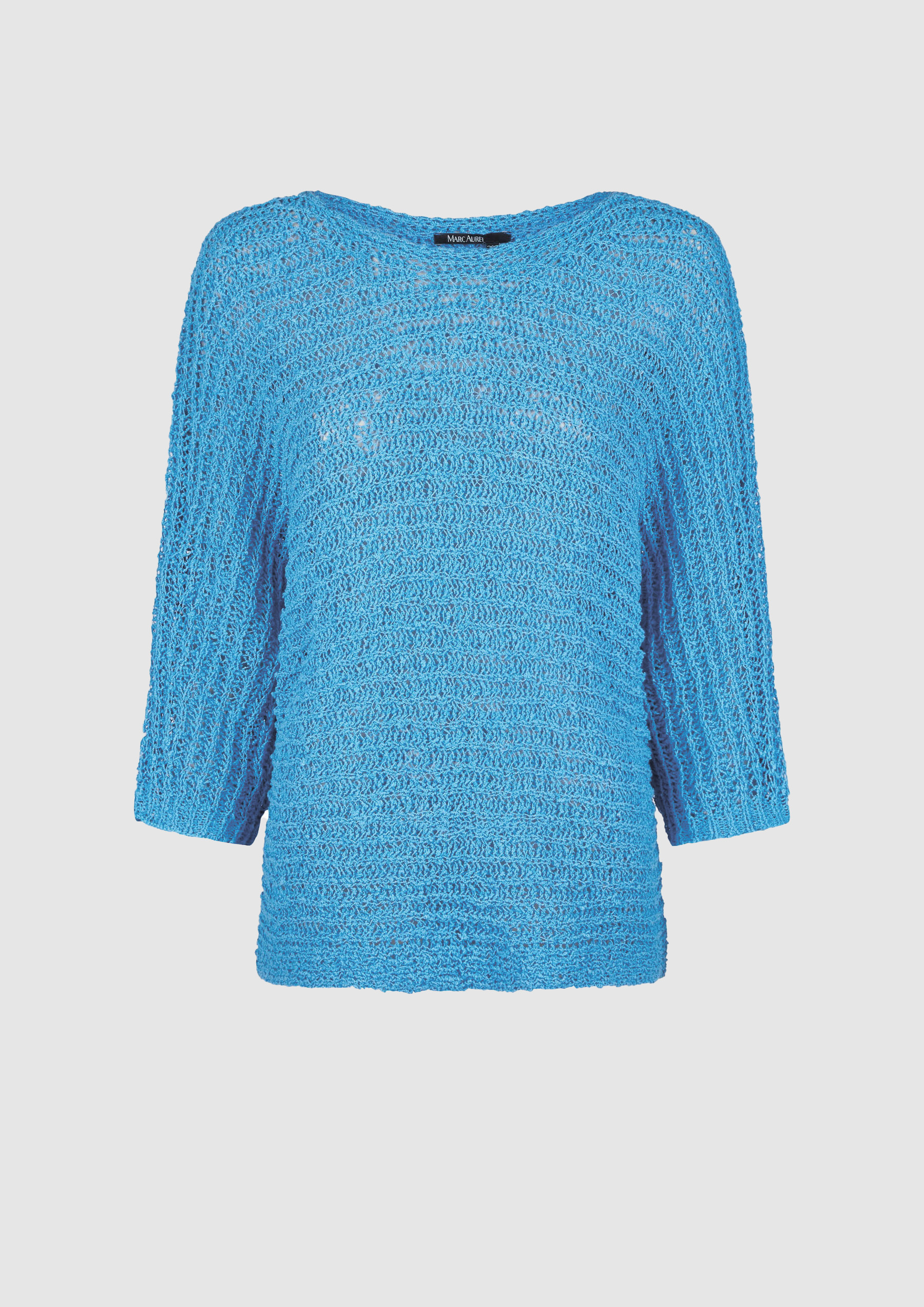 Свитер «крыло летучей мыши» изготовлен из высококачественной пряжи букле, очень мягкой на ощупь. Он сделан из хлопка от Better Cotton Initiative. Вырез «лодочка» и повседневная ширина так же впечатляют, как и модный горизонтальный вязаный узор