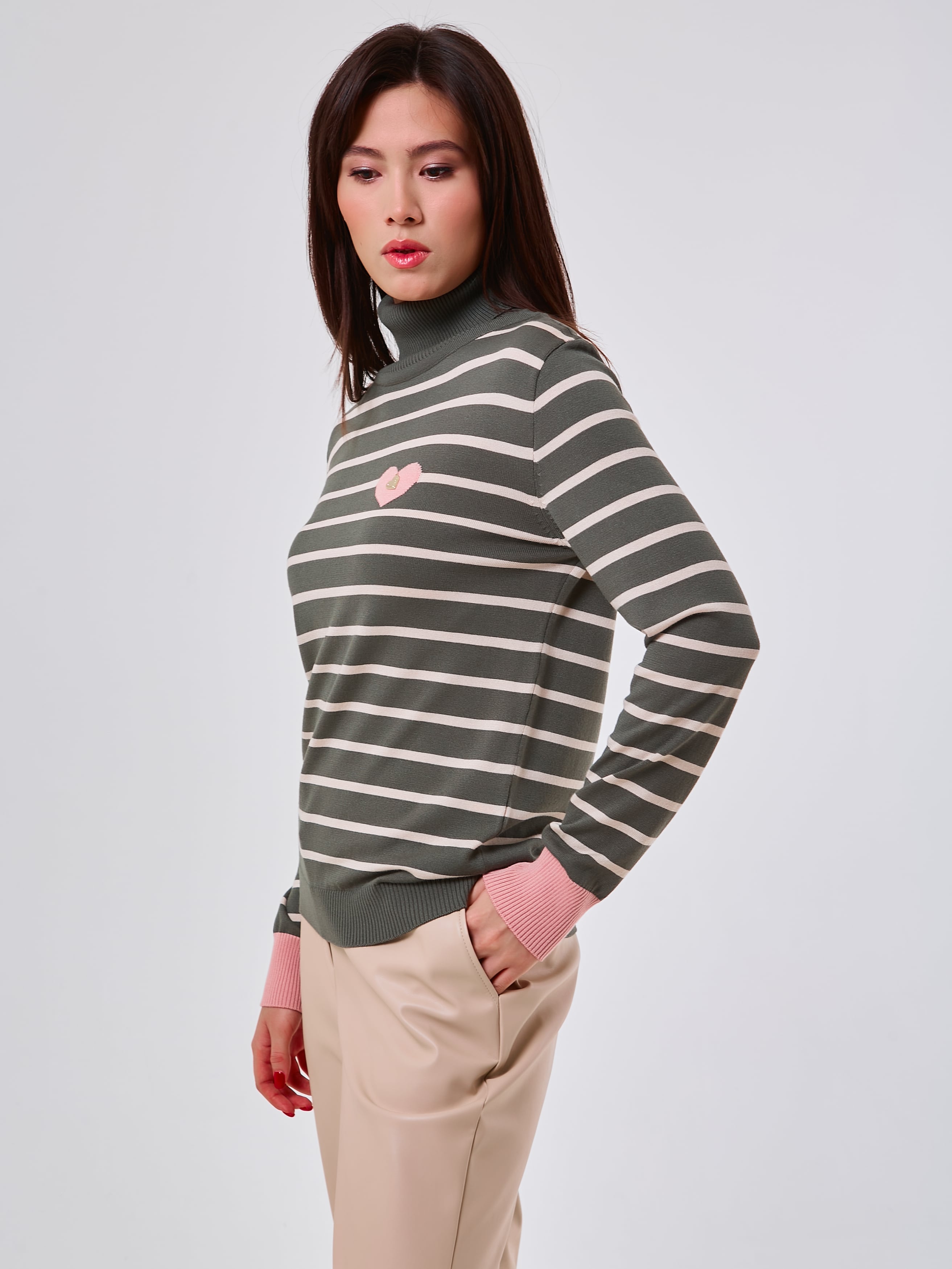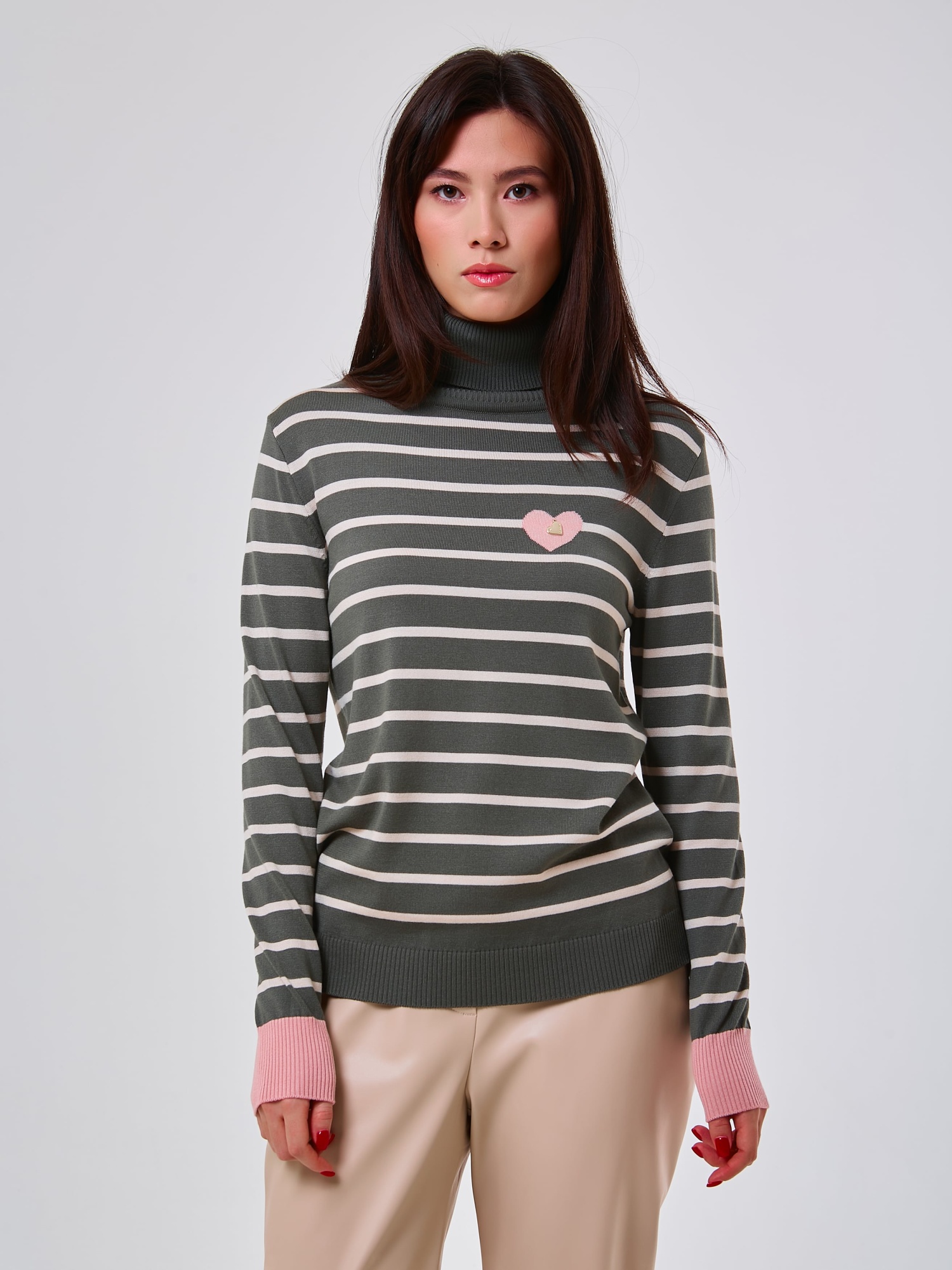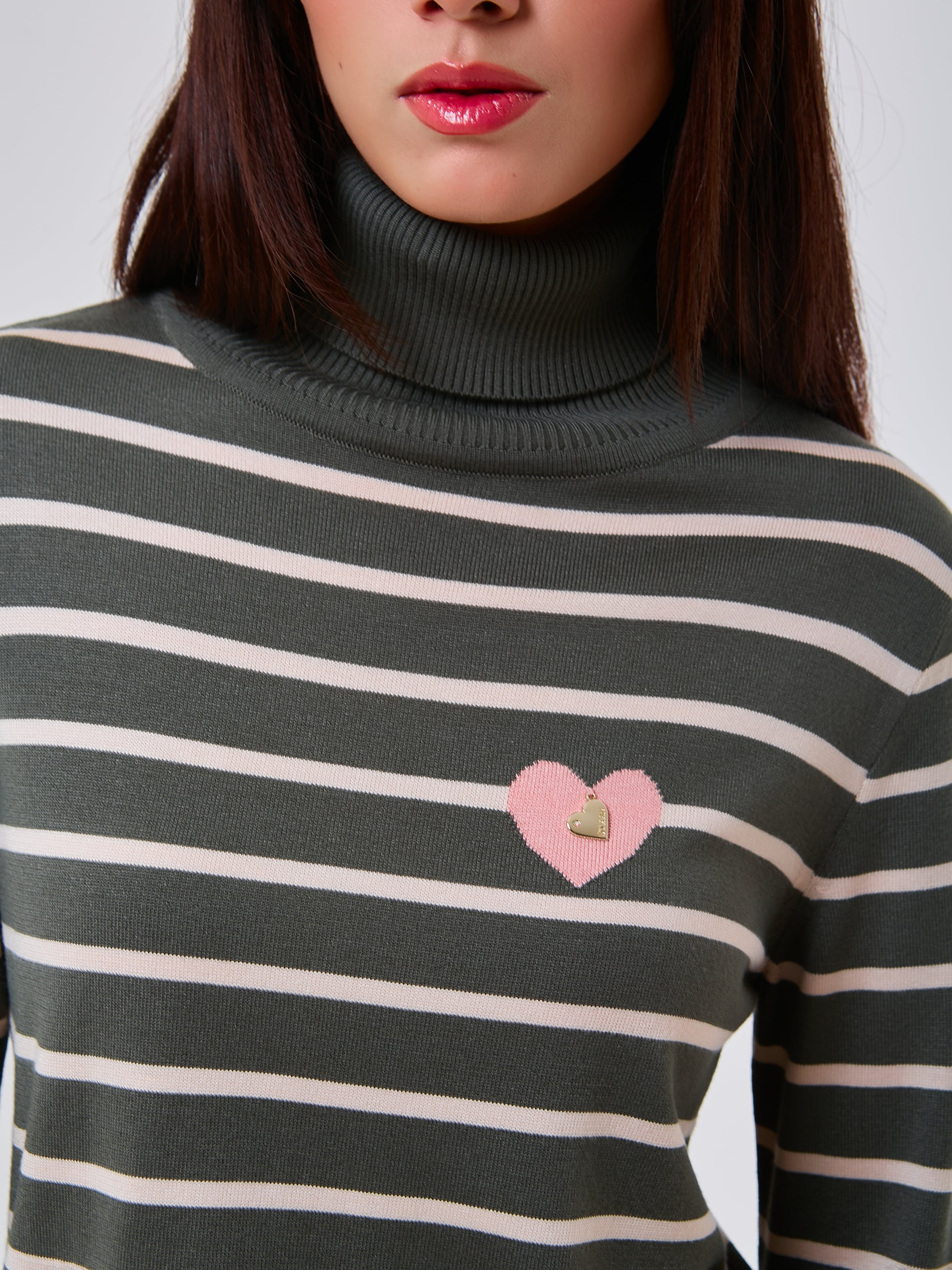 Романтичная водолазка с декором в виде сердца на груди. Выполнена в классическом цвете хаки. Осень-Зима'25/26. Капсула "Малахитовая шкатулка"