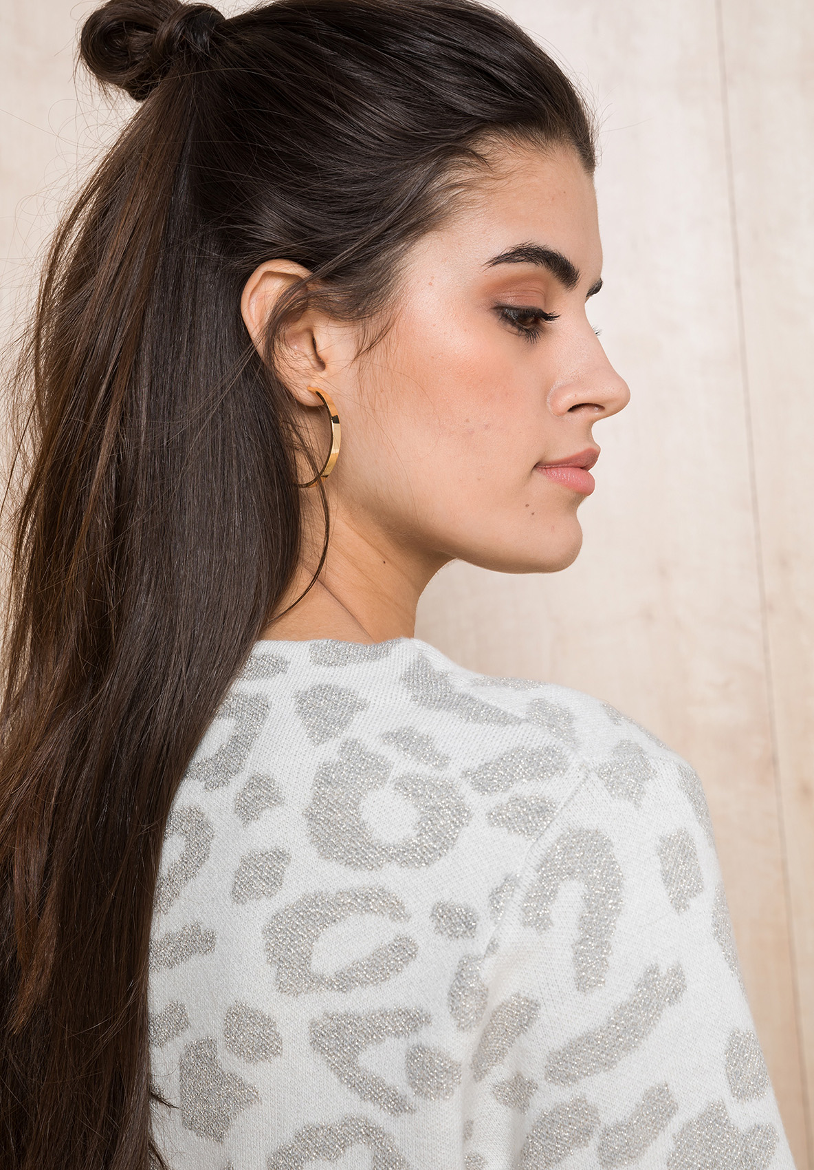 Трикотаж может быть изысканным, и этот джемпер - тому доказательство! Покрой по фигуре, вырез горловины "воронка", втачные рукава полной длины. Анималистический рисунок подчеркнут деликатным блеском нити люрекса. Приятный к телу смесовый материал с хлопком, вискозой и шерстью обеспечивает комфорт.