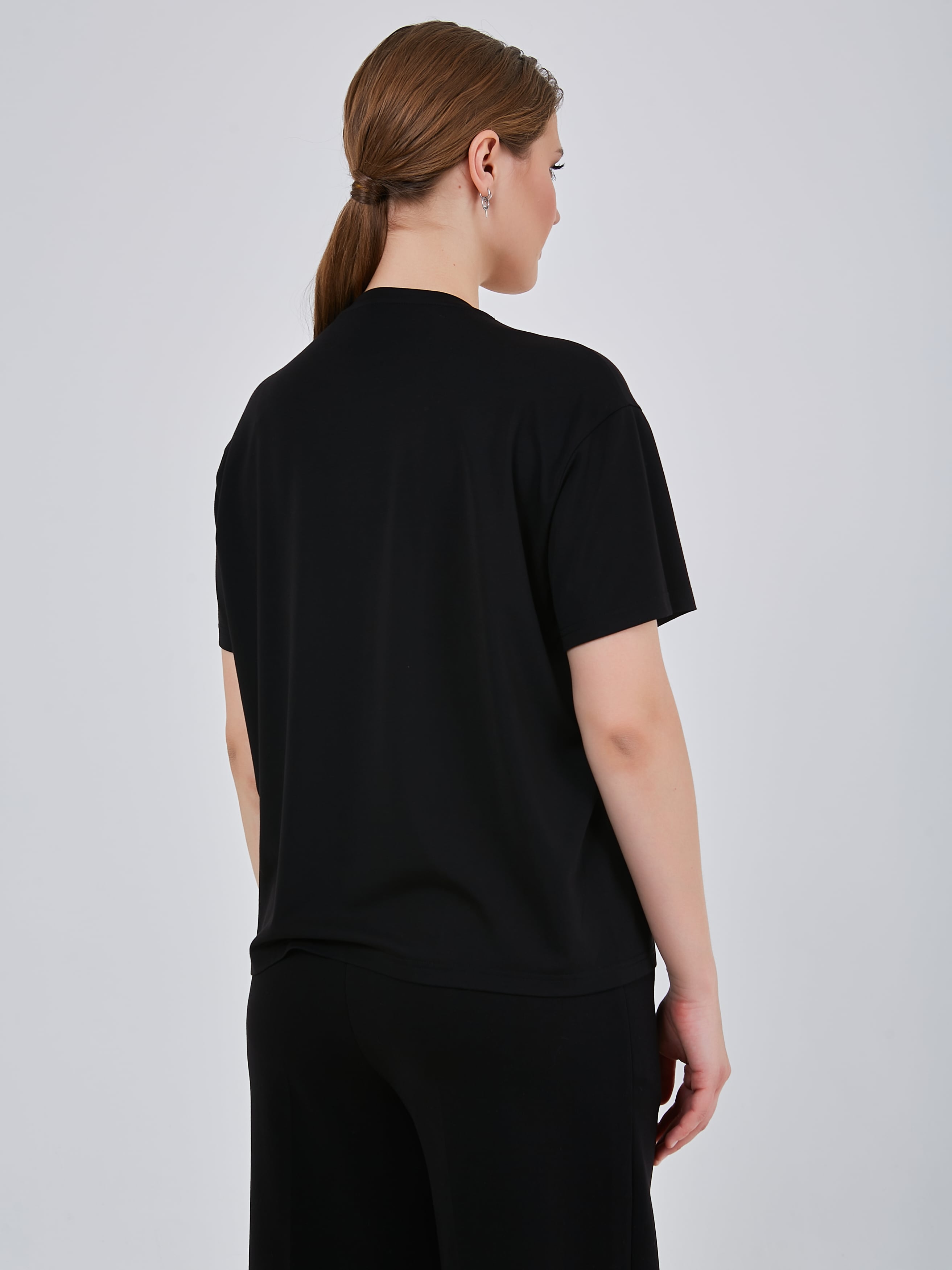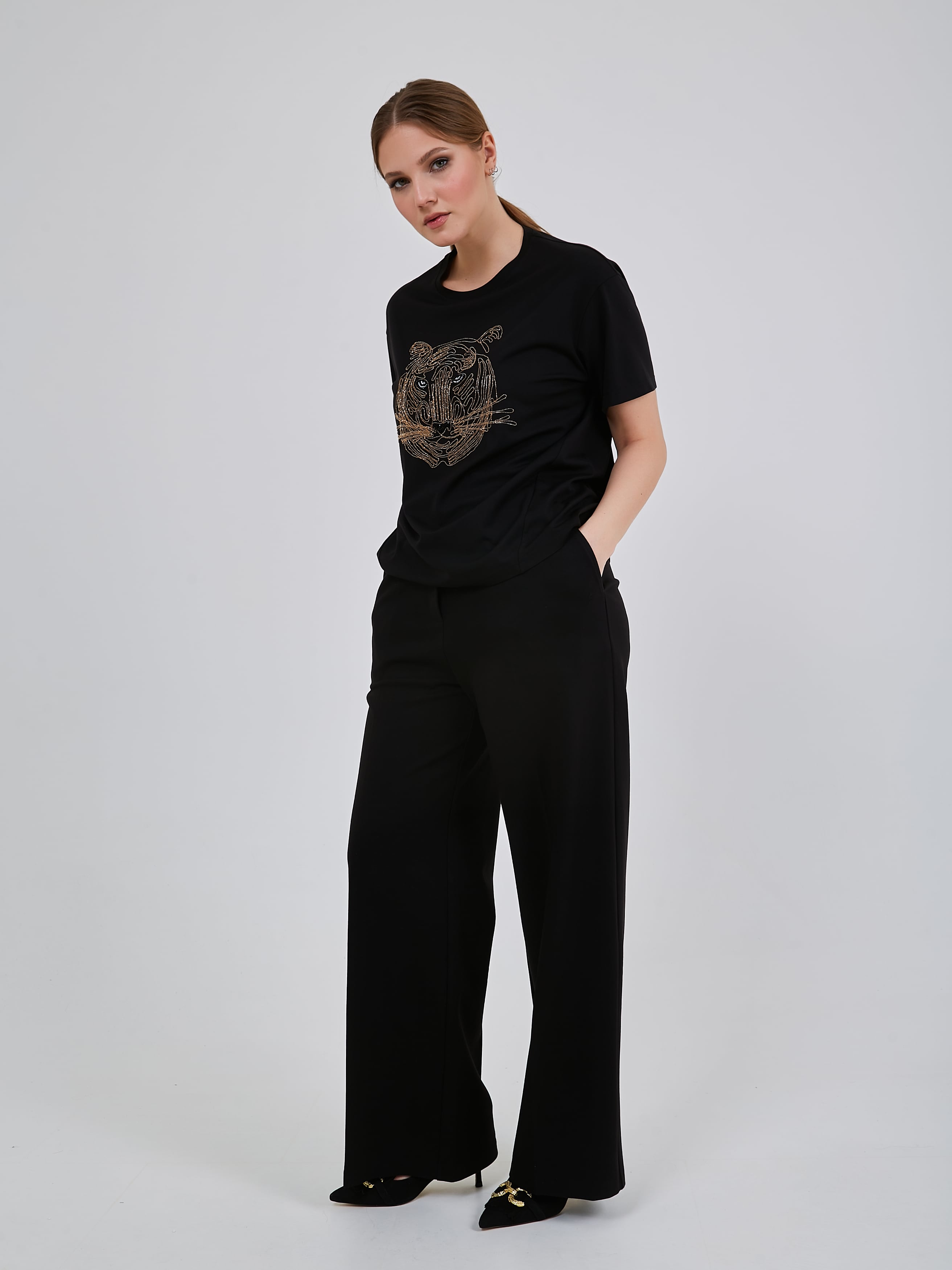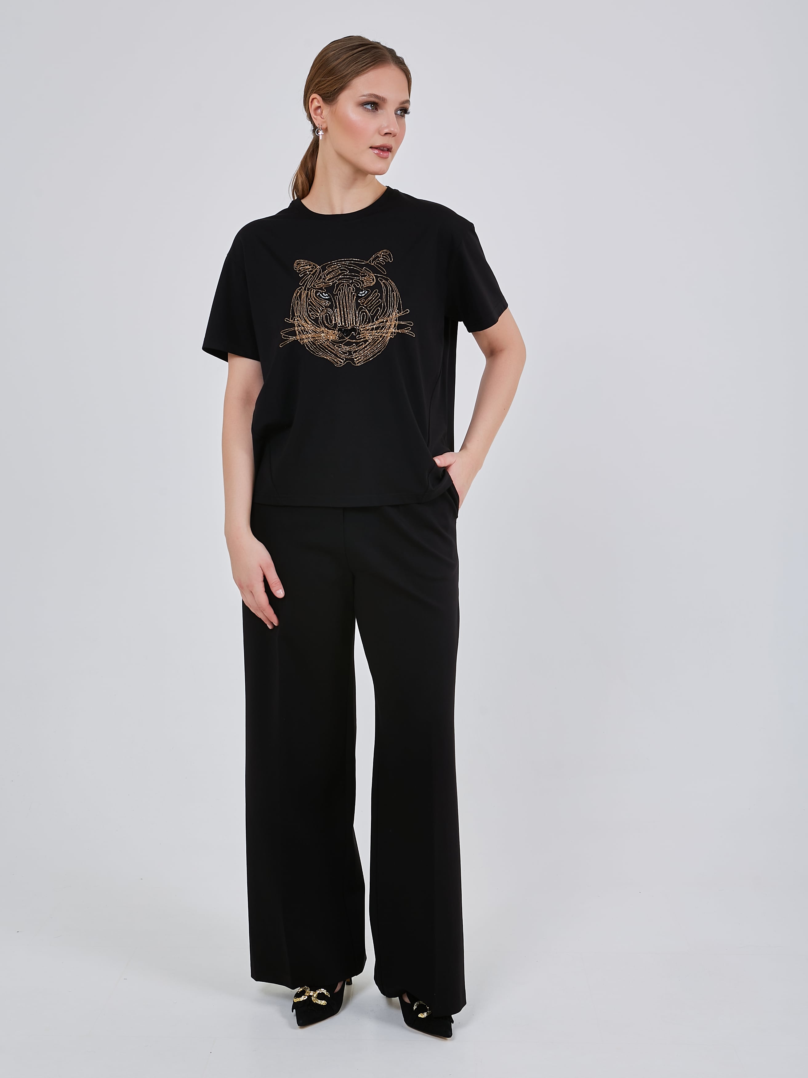 Чёрный джемпер с коротким рукавом и орнаметом в виде тигра. Коллекция Осень-Зима 2024-2025. Капсула "Крадущийся тигр, затаившийся дракон".