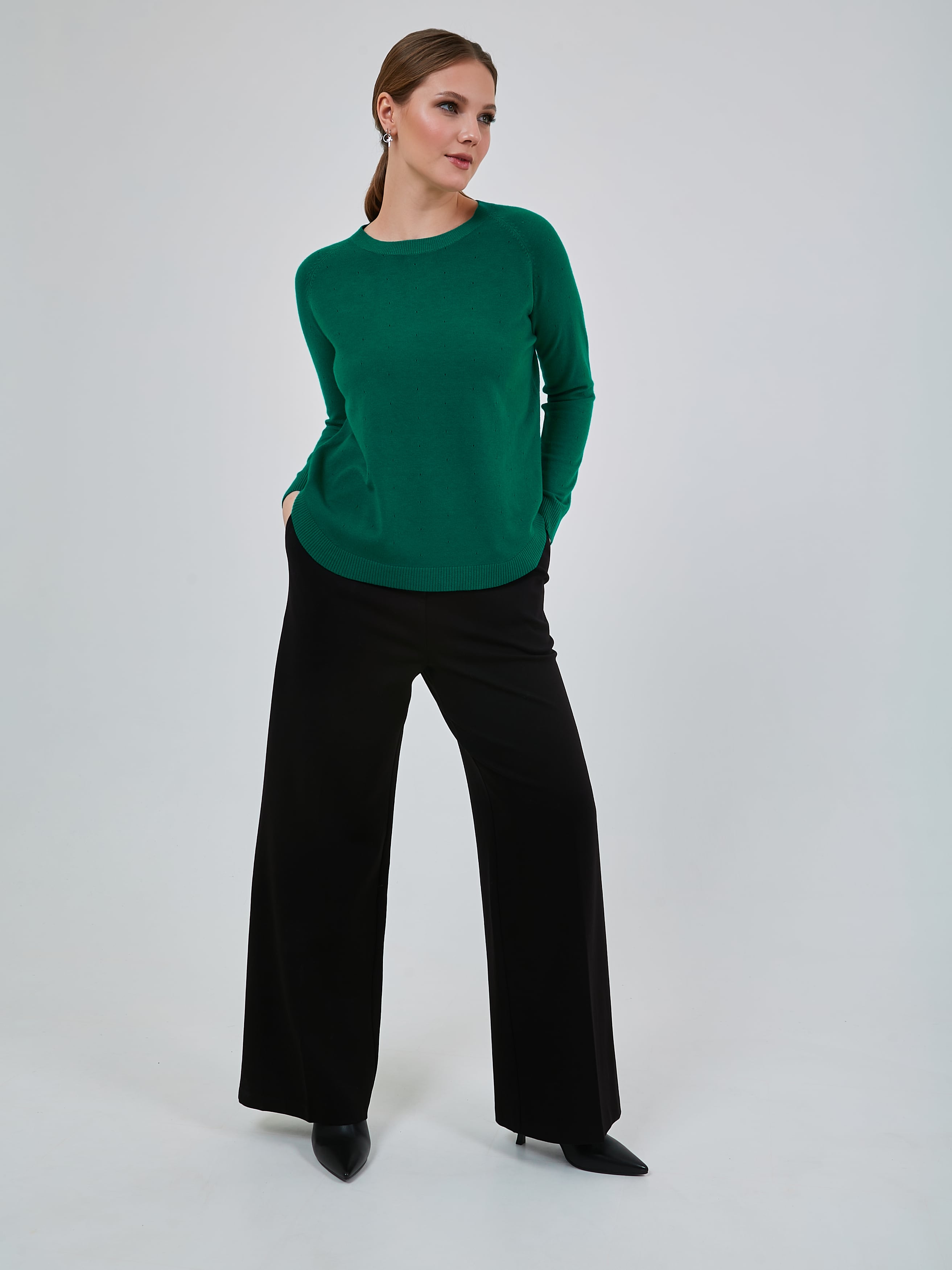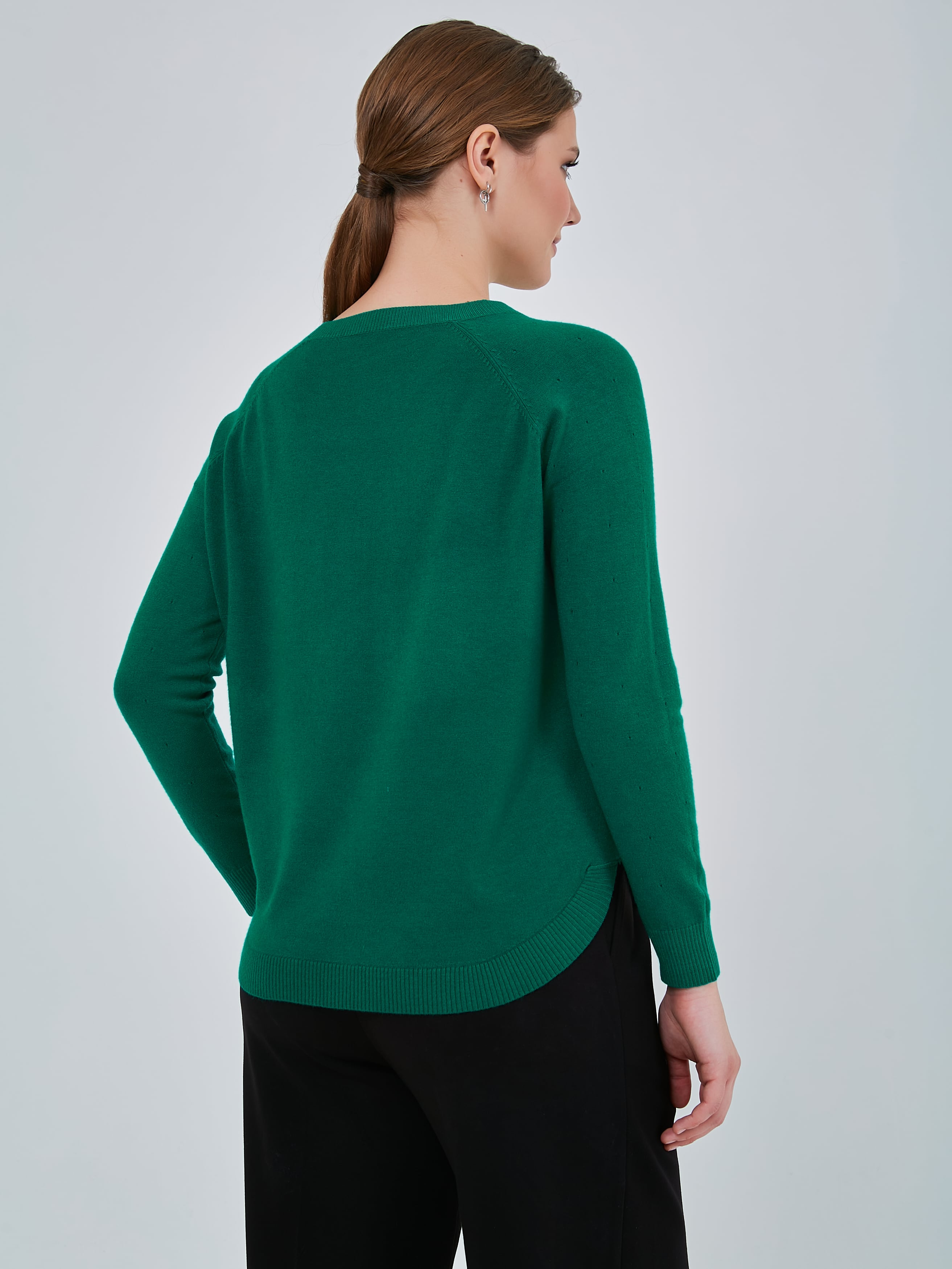 Удлиненный джемпер свободного кроя из вискозы со скругленной линией низа. Осень-Зима'25/26. Капсула "Малахитовая шкатулка"