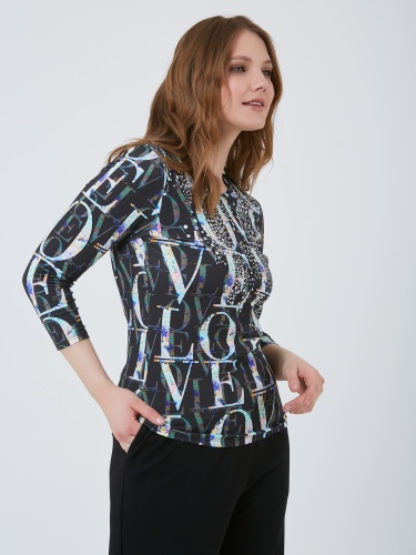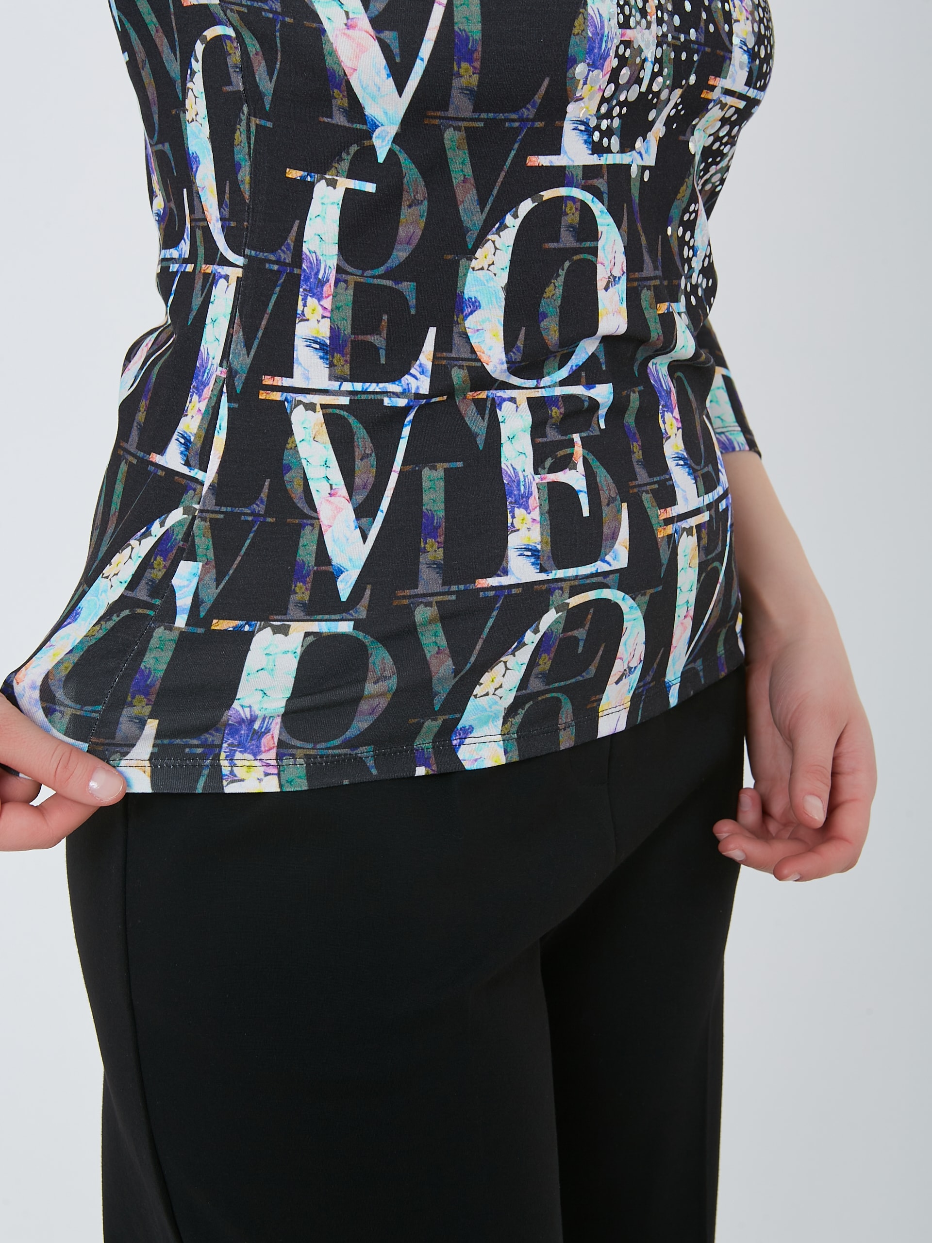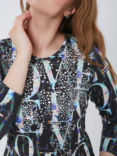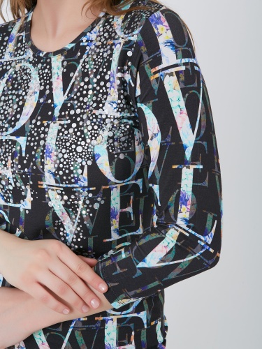 Лонгслив с крупным принтом в виде слова LOVE. Рукав 3/4. Осень-Зима'25/26. Капсула "Малахитовая шкатулка"