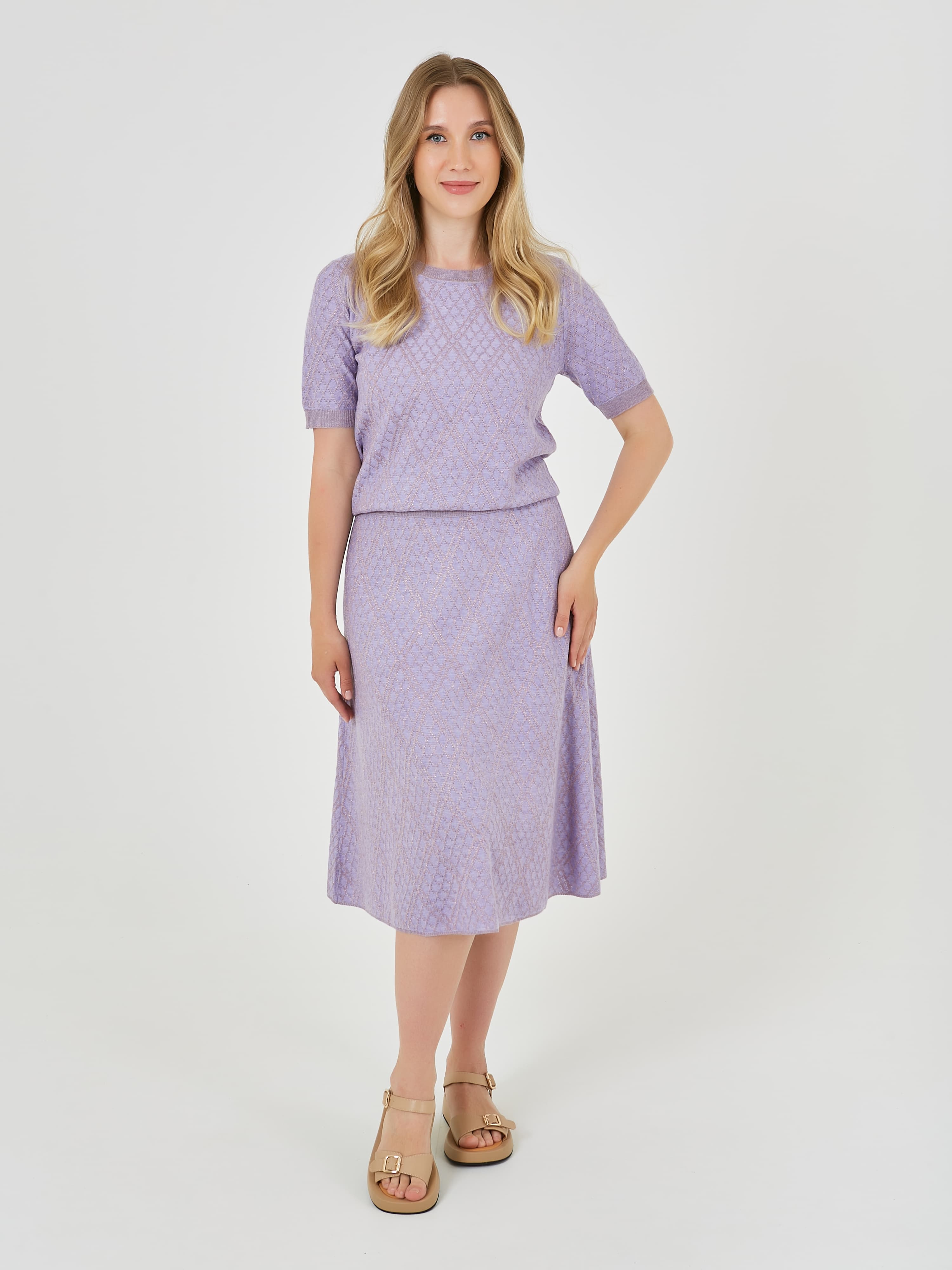 Джемпер с переплетением пряжи узором аргайл подойдет на более прохладный переходный период весны. В составе есть небольшой процент содержания шерсти. Коллекция Весна-Лето 2025-2026. Капсула "Самарканд". Параметры модели: 89-70-92, рост 167, размер 44-46