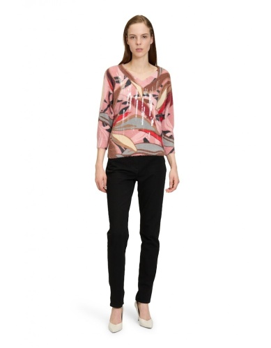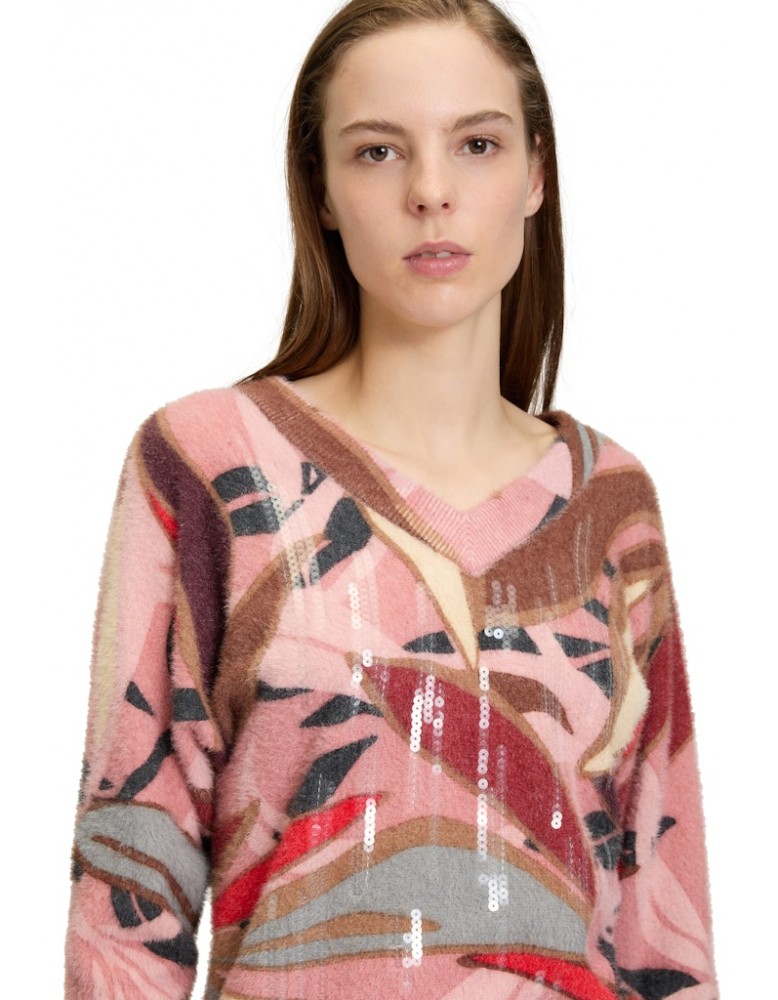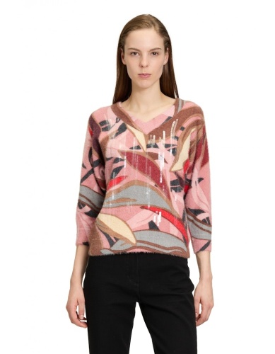 Теплый вязаный свитер от в красивых цветах станет обязательной вещью в вашем гардеробе! Узорчатая модель с рукавами 3/4 и эффектным V-образным вырезом . Спереди свитер украшен прозрачными пайетками, что добавляет ему стиль и индивидуальность. Фасон прекрасно скроет недостатки женской фигуры и обеспечит свободу движений.