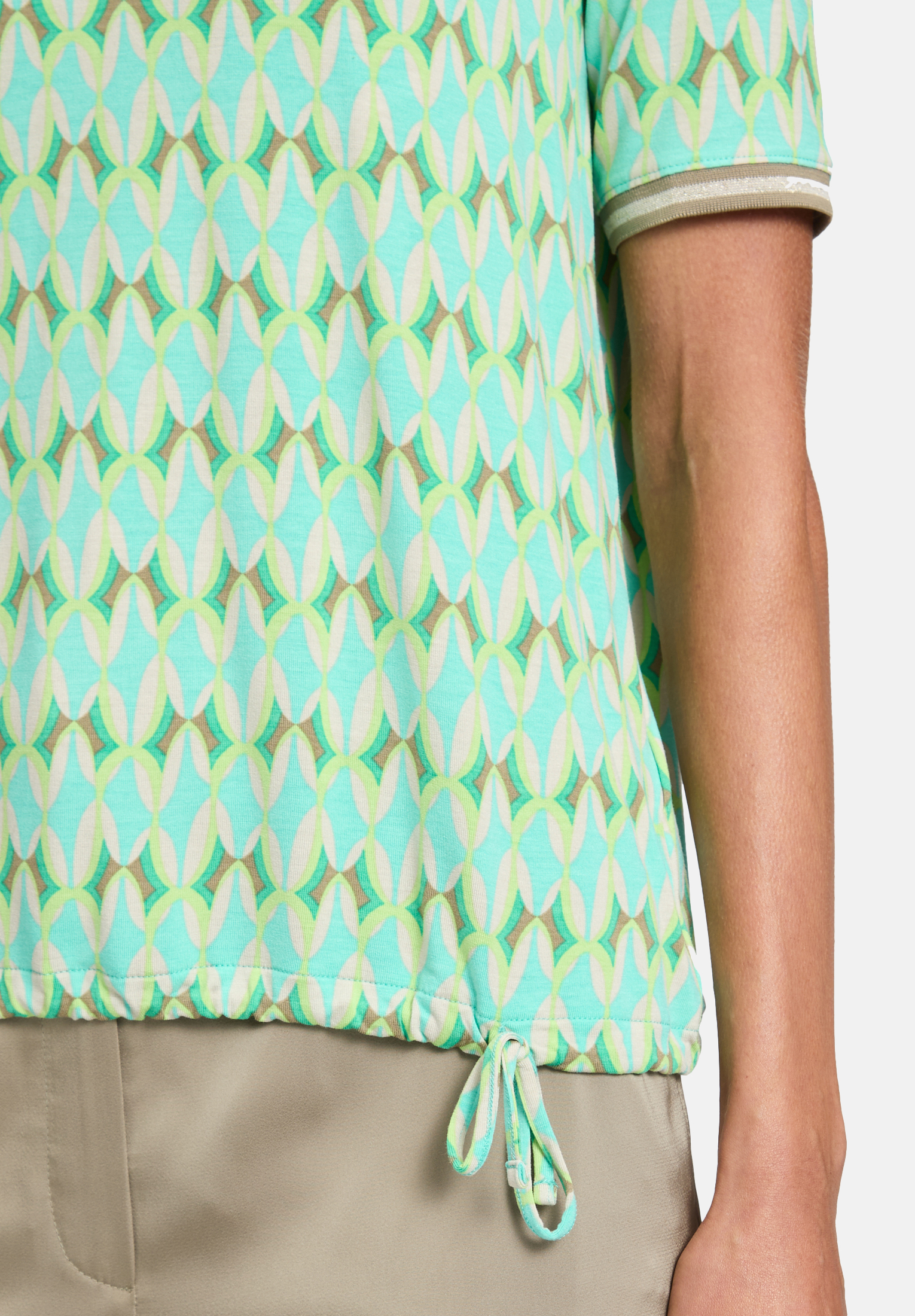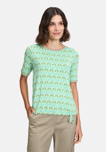 Повседневная рубашка с короткими рукавами и вырезом-лодочкой добавит свежести вашему образу в свободное время благодаря графичному дизайну. Ребристые манжеты добавят игривости. Свободный крой обеспечивает комфортный и стильный образ, универсальный и идеально подходящий для отдыха.