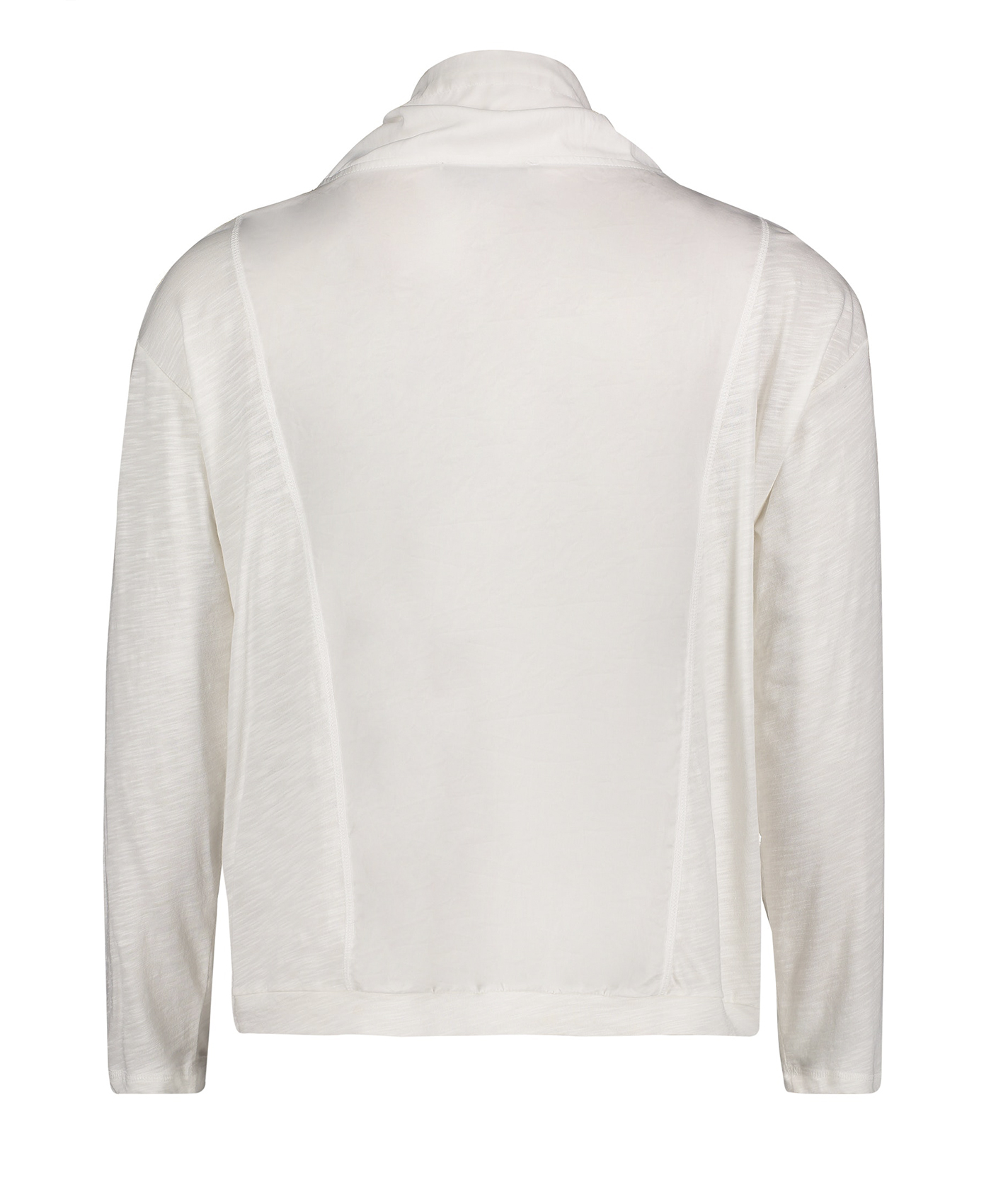 Джемпер прямого покроя. Длинные рукава, капюшон на кулиске. Сочетание приятных к телу материалов. Отличный вариант для прогулок и занятий спортом.