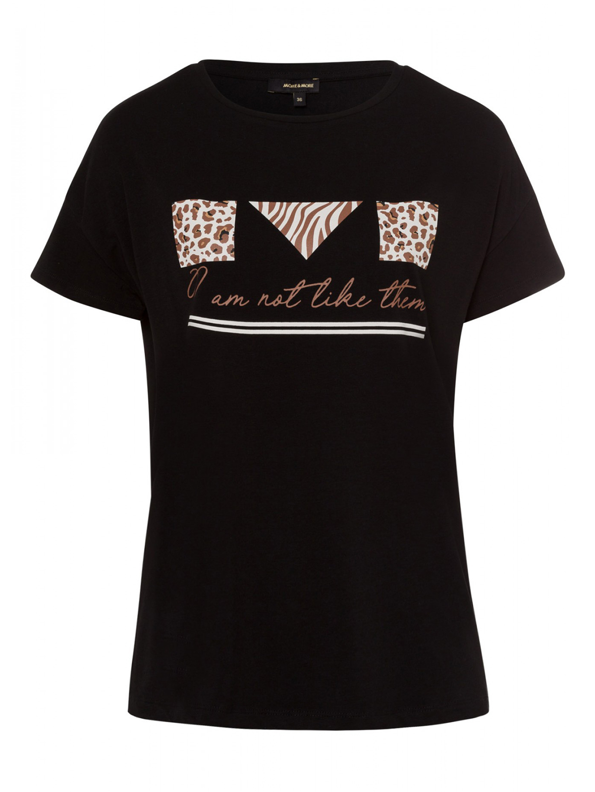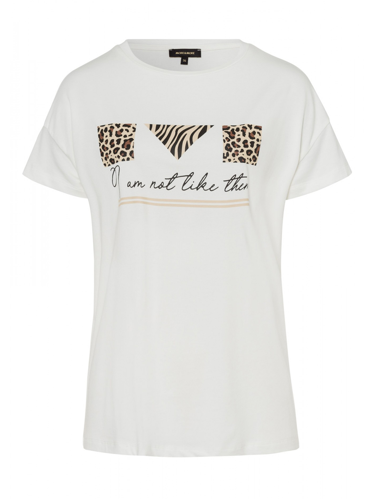 Однотонная футболка с принтом – базовый атрибут капсульного гардероба любой современной женщины. Cостав материала из смесового хлопка приятен к телу и обеспечивает комфортное ношение. Футболку можно носить навыпуск или заправлять в брюки или юбку.