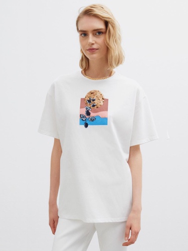 Белая футболка спринтом – базовый элемент капсульного гардероба любой современной женщины. Универсальна, прекрасно подходит для образов в разном стиле от делового до повседневного городского.