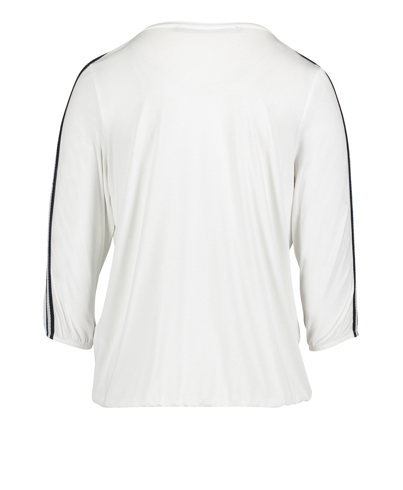 Свобода в тренде! Футболка свободного покроя. Круглый вырез горловины. Рукава 3/4 украшены тесьмой. Декор стразами придает образу нотку гламура. Материал из вискозной смеси приятен к телу и обеспечивает комфорт. Эта футболка станет изюминкой множества образов в стиле кэжуал.
