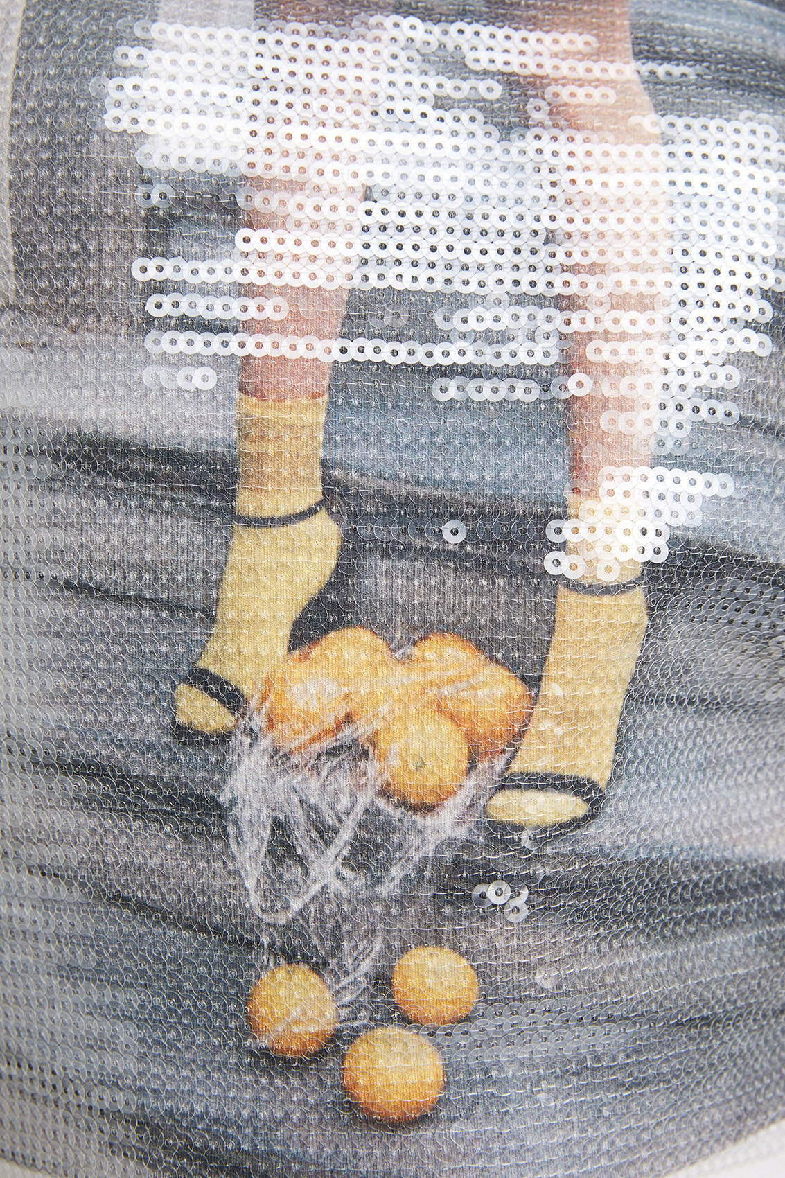 Футболка прямого покроя. Круглый вырез горловины, короткие рукава. Контрастный принт обращает на себя внимание, а пайетки привносят нотку гламура. Хлопковый материал приятен к телу и обеспечивает комфорт. Эта футболка - отличный вариант верха для множества стильных образов.