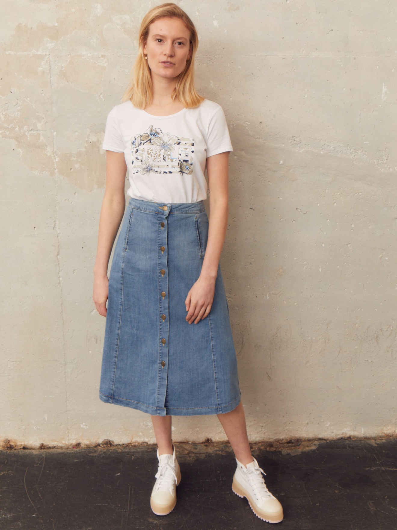 Базовая футболка белого цвета с цветочным принтом спереди. - прямой крой - круглый вырез - с коротким рукавом - приятная смесь хлопка и модала - длина по размеру 42 = 62 см