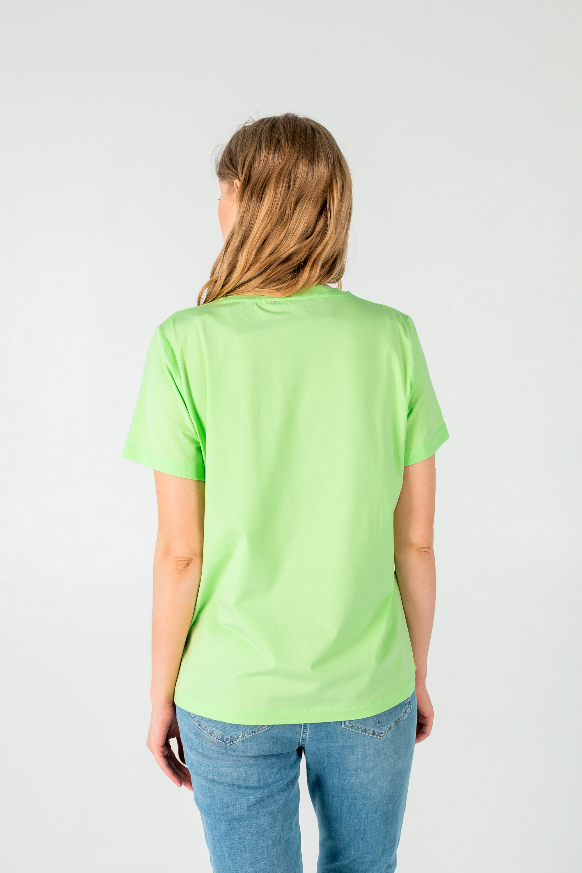 На сайте указаны российские размеры. Ткань: материал из смеси хлопка (49%), вискозы (46%) и эластана (5%) Крой: однотонная базовая футболка прямого силуэта средней длины. Имеет круглый вырез и свободный короткий рукав-реглан. Подходит под разные типы фигур. Отделка: украшена фирменным шильдиком с надписью Stern. Идеальная базовая футболка, которая станет самостоятельным элементом или первым слоем для жакетов, рубашек, джемперов и кардиганов.