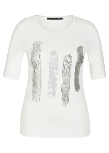 Однотонная футболка с принтом для образа в стиле кэжуал. Втачной рукав ½, круглый вырез горловины. Состав из смесовой вискозы обеспечивает комфортное ношение.