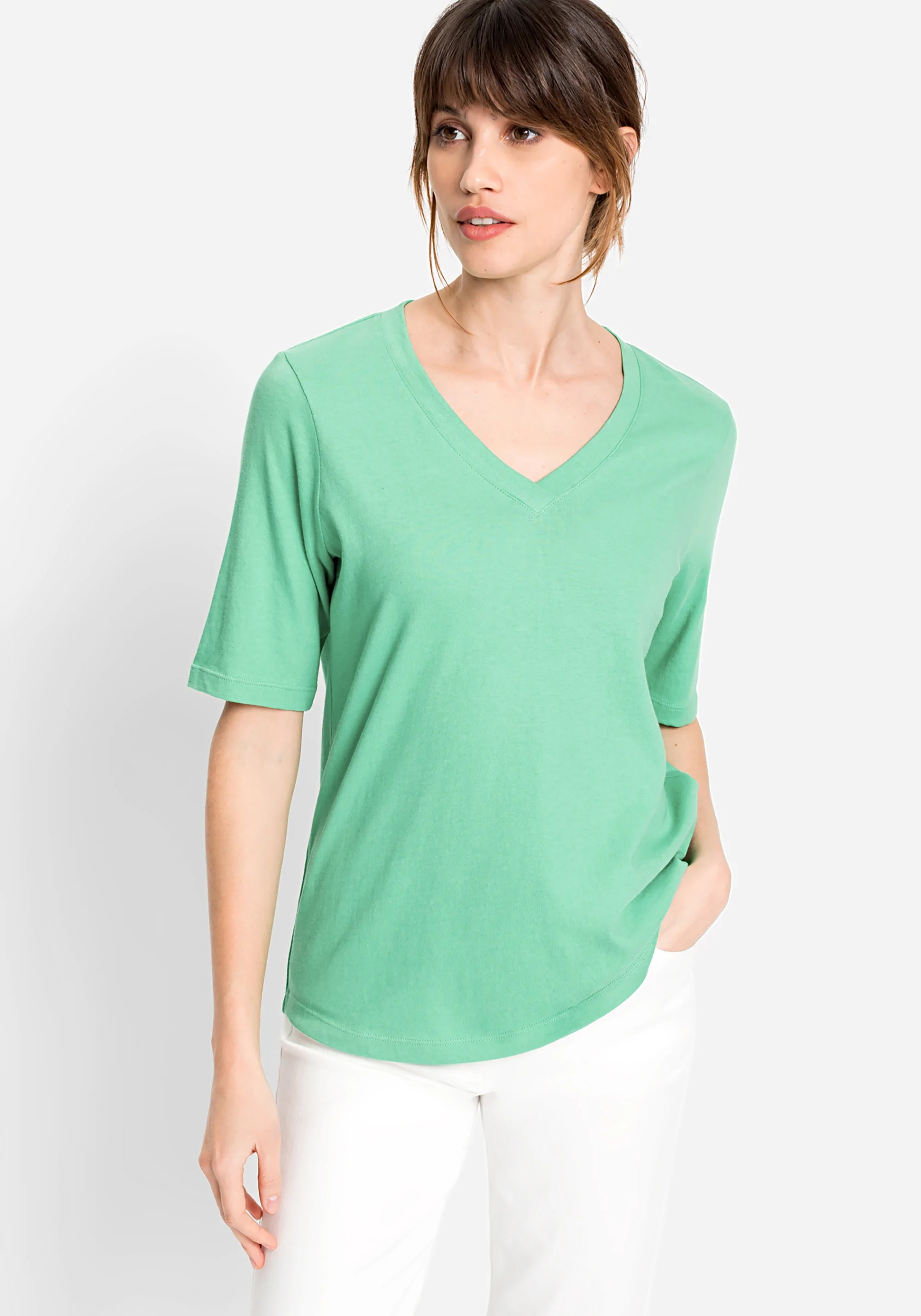 На сайте указаны Российские размеры. Футболка свободного из 100 % хлопка с v-образным вырезом добавит изюминку любому наряду.