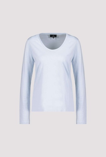 На сайте указаны российские размеры. Легкая базовая рубашка с длинными рукавами и круглым вырезом. Удобная посадка гарантирована благодаря прямому крою с круглым вырезом и качественному материалу из хлопка и модала. Просто мечтательная базовая вещь на каждый день. Рост модели: 176 см. Длина спины 44 размера 64 см.