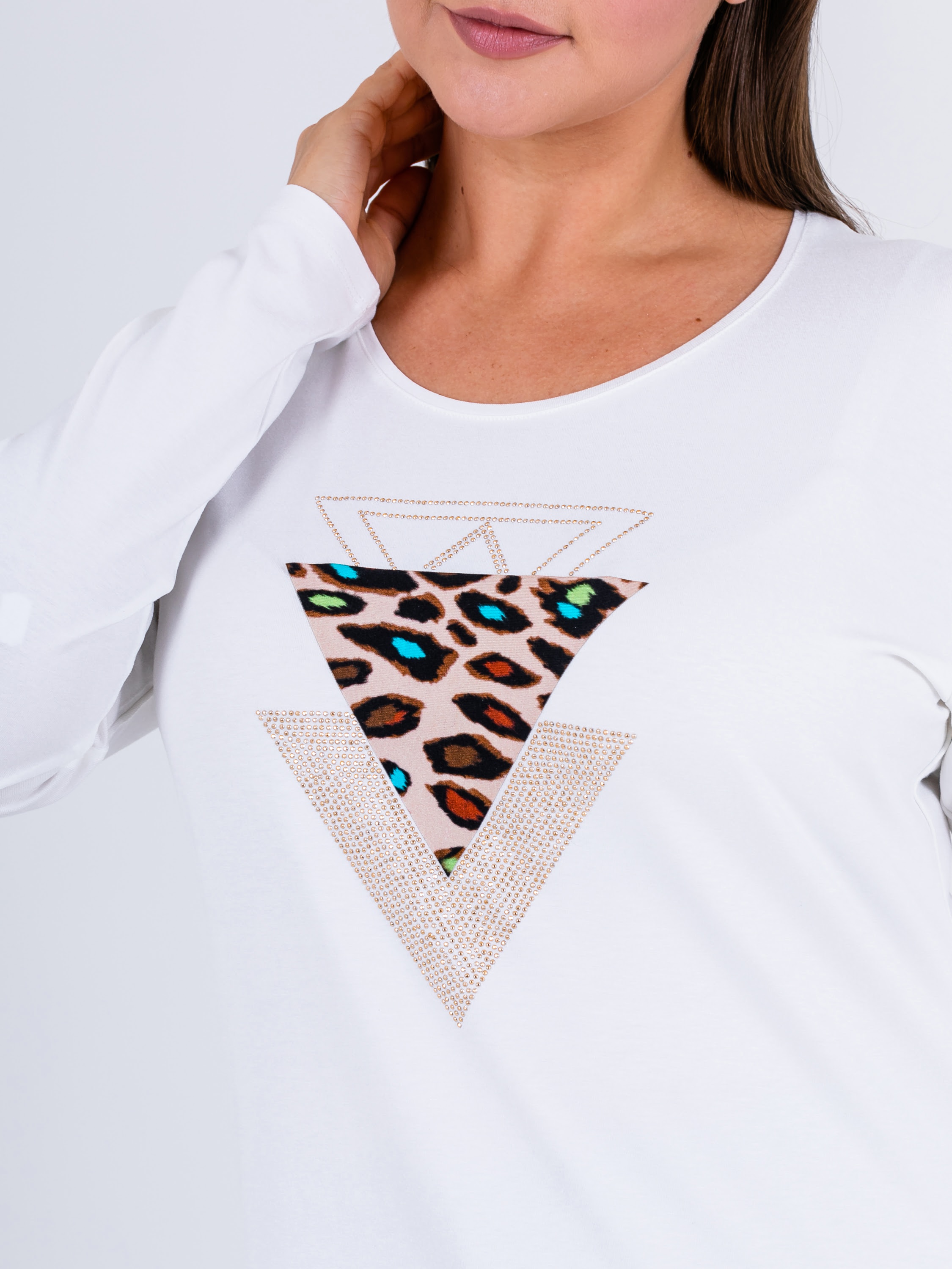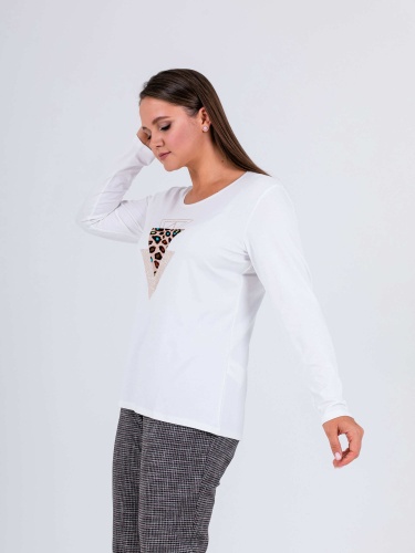 На сайте указаны российские размеры. Ткань: 92% вискоза, 8% эластан. Крой: джемпер из мягкой эластичной вискозы прямого силуэта с круглым вырезом и длинным рукавом. Базовая модель, которая хорошо подходит женщинам разных типов фигур, включая нестандартные. Имеет достаточную длину, прикрывает область живота, не поднимается вверх при ходьбе. Отделка: леопардовый принт, геометрия и россыпь переливающихся страз – нет, не слишком. Яркие детали создают яркое настроение, а это как раз то, что нужно в череде серых будней. Идеальная база для однотонного низа, без принтов и паттернов. Выберите юбку, джинсы или брюки в соответствующих разделах на нашем сайте.