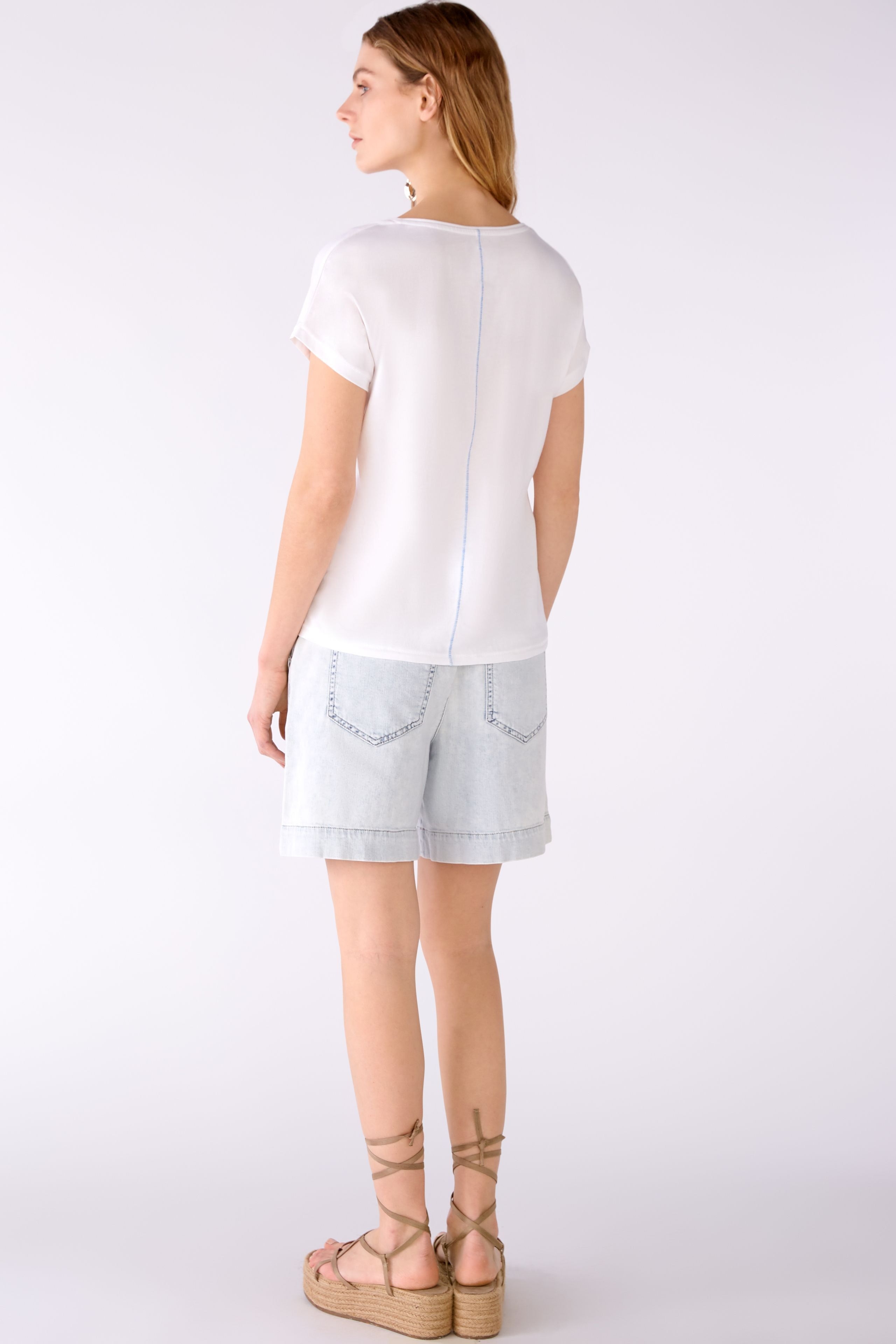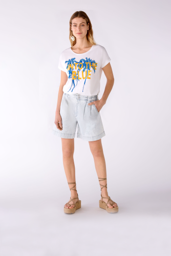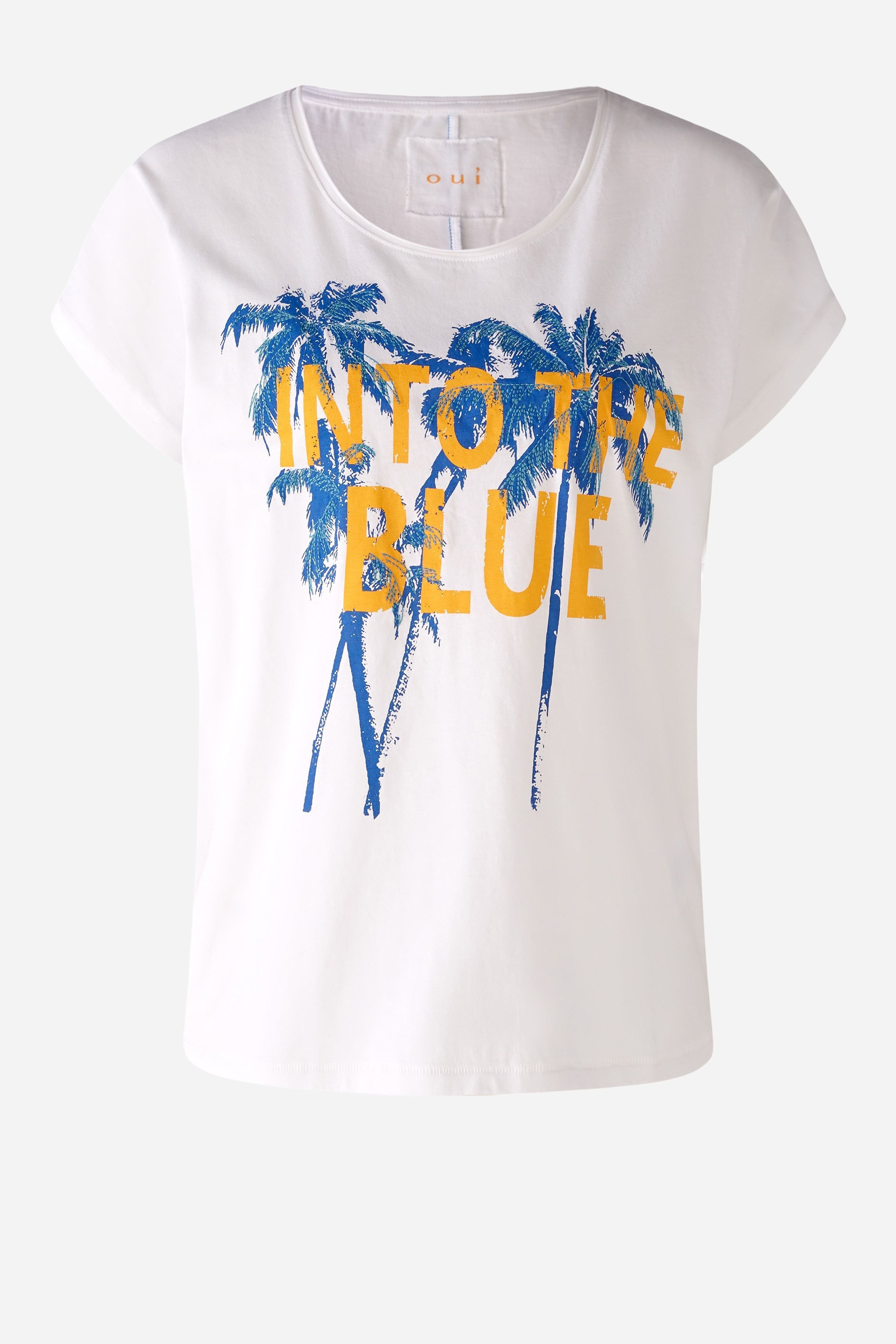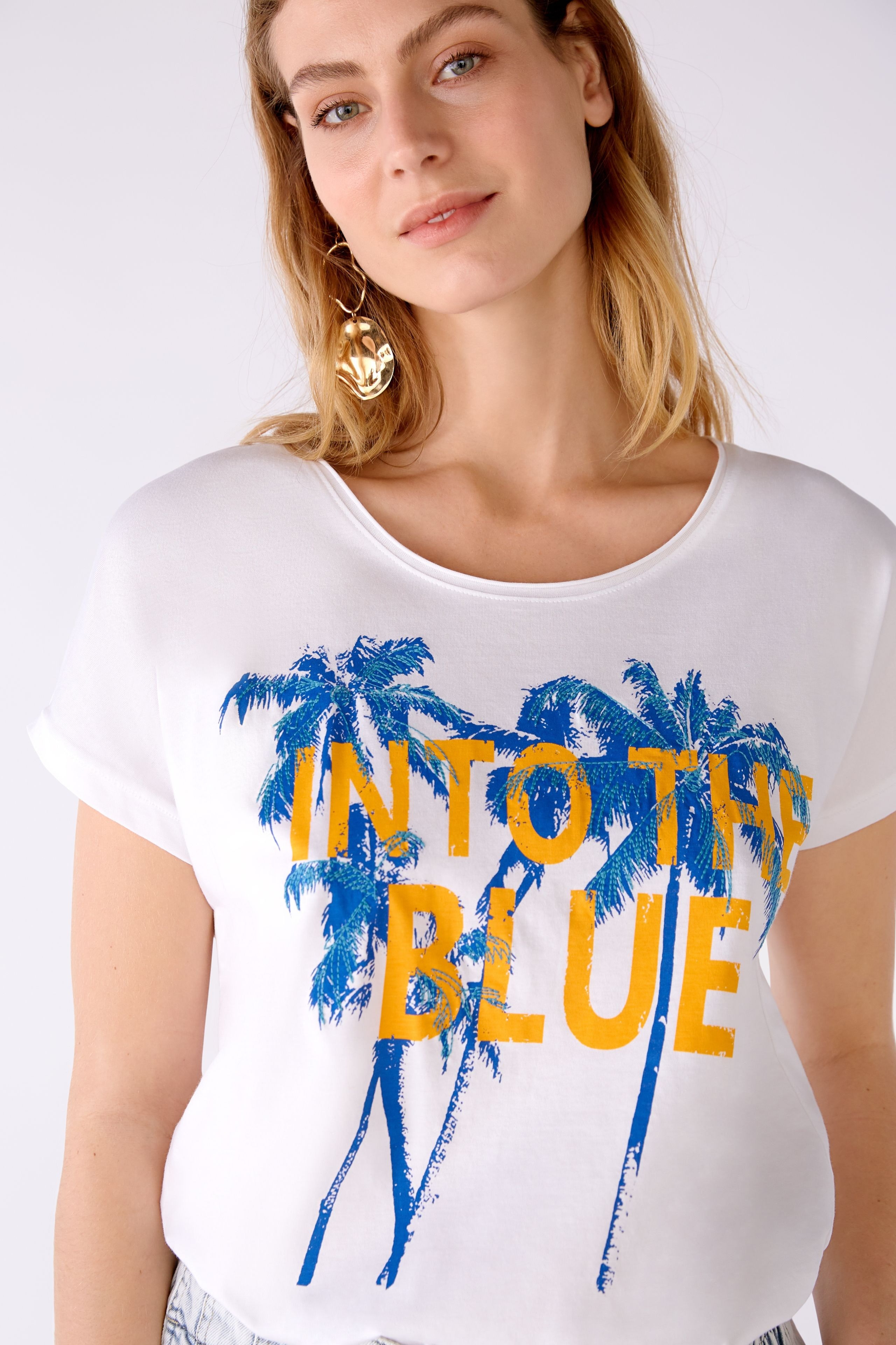 Футболка из органического хлопка с принтом спереди. Круглый вырез горловины с закругленным краем.Заниженная линия плеча, короткие рукава. Контрастный каваллиновый шов на спине. Длина в размере 42: 64 см.