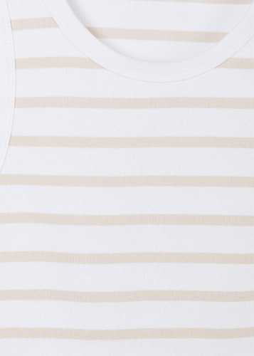 Классика для отдыха: спортивный топ с круглым вырезом и модными полосками — это вневременной универсал, который привнесет свежесть в любой образ. Его можно использовать для создания множества повседневных стилей, а также носить как базовую вещь под пиджаком или блейзером. Мы создали этот топ из удобного эластичного трикотажа в рубчик на хлопковой основе.