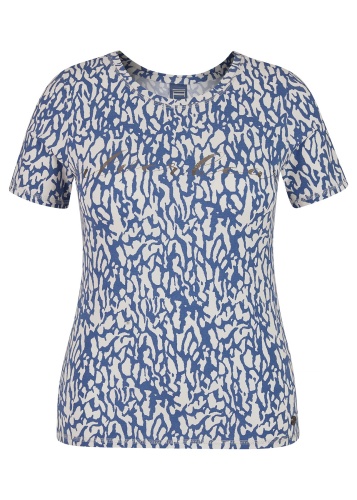 Футболка с абстрактным принтом полуприлегающего кроя. Короткий втачной рукав, круглый вырез горловины.