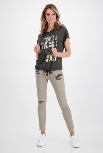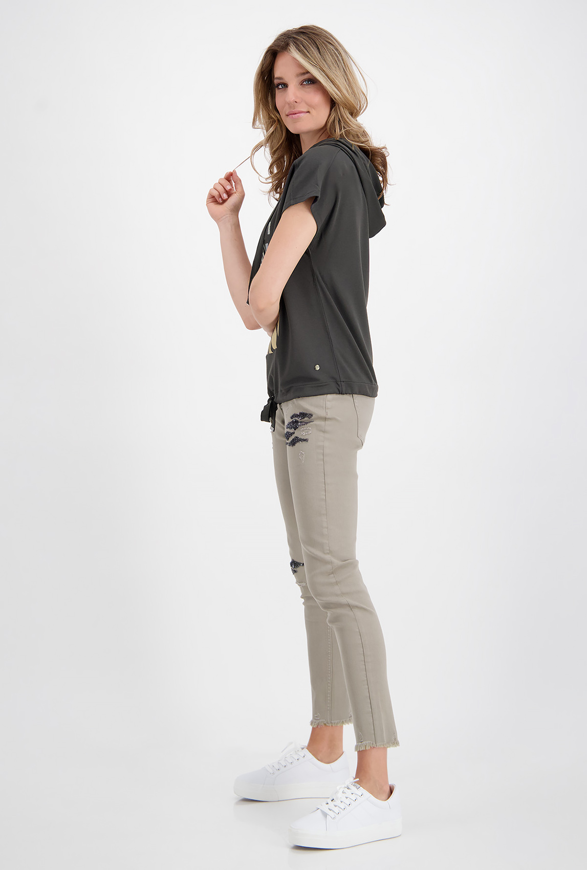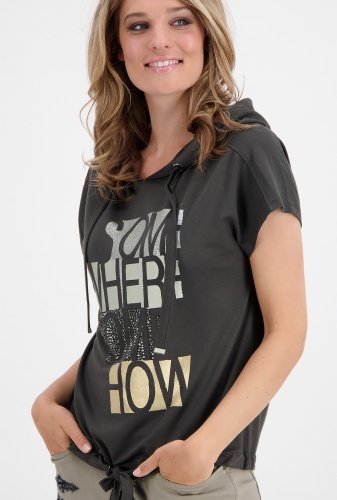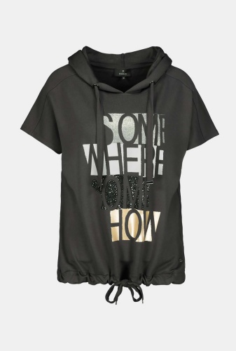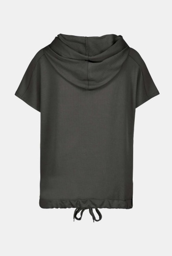 Футболка свободного силуэта – удобный и комфортный вариант на повседневный или спортивный образ. Капюшон на кулиске, также кулиска по низу изделия. Цельнокроенный рукав.