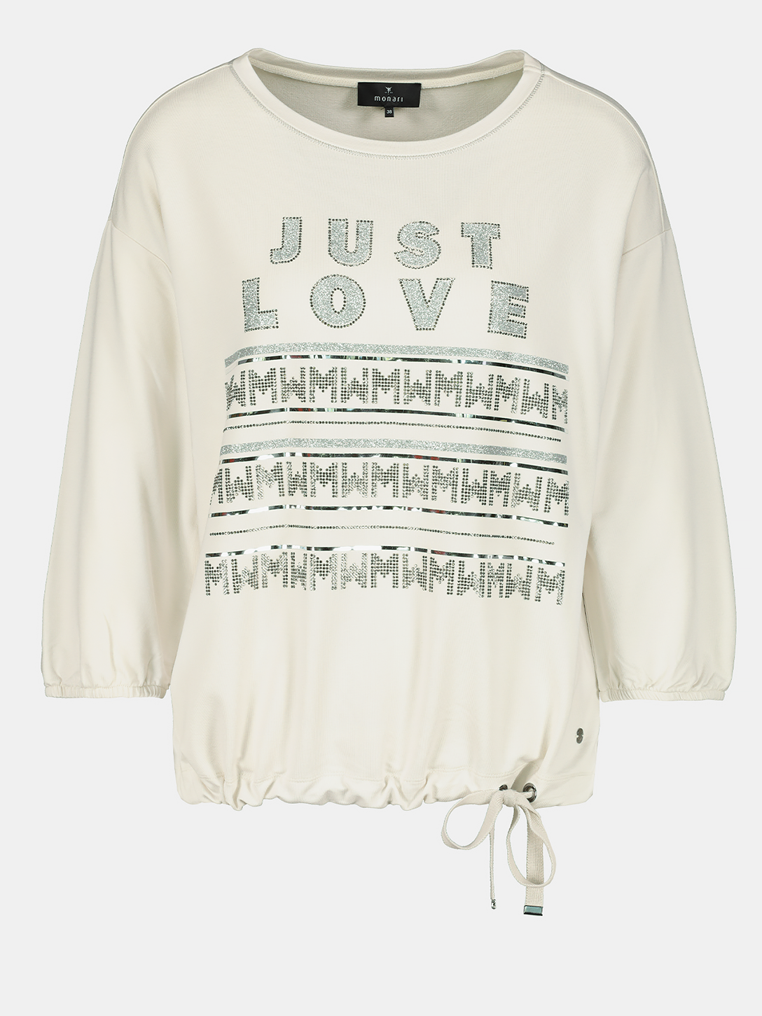 Джемпер свободного силуэта идеально скроет недостатки фигуры и подчеркнет ее достоинства. Практичный вариант для повседневного стиля. На груди яркий принт, украшенный стразами. Втачной рукав ¾, спущенная линия плеча. Кулиска по низу изделия.