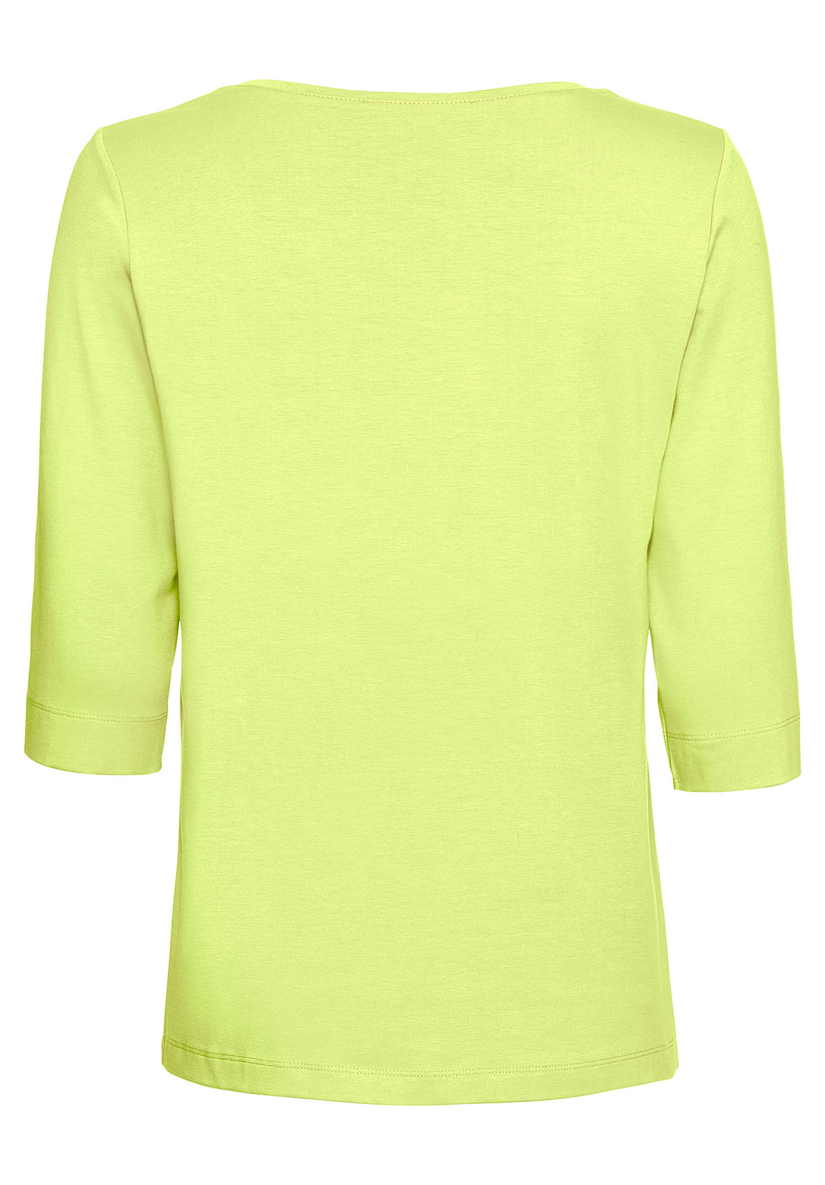 Простая футболка прямого покроя - обязательный элемент базового гардероба. Приятный к телу материал из смеси хлопка, модала и эластана обеспечит комфорт и идеальную посадку. Рукав 2/3 и широкая круглая горловина придают модели непринужденный вид. Эта футболка подходит как для офиса, так и для прогулки.