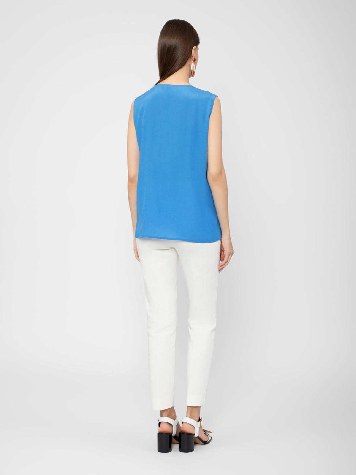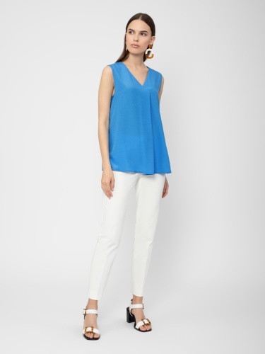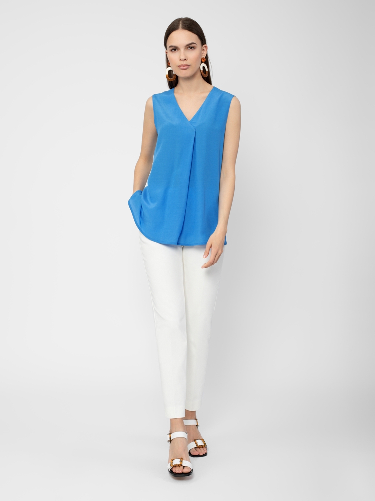 Топ из вискозы прямого силуэта без рукавов с v-образным вырезом горловины. Спереди вертикальная декоративная складка.