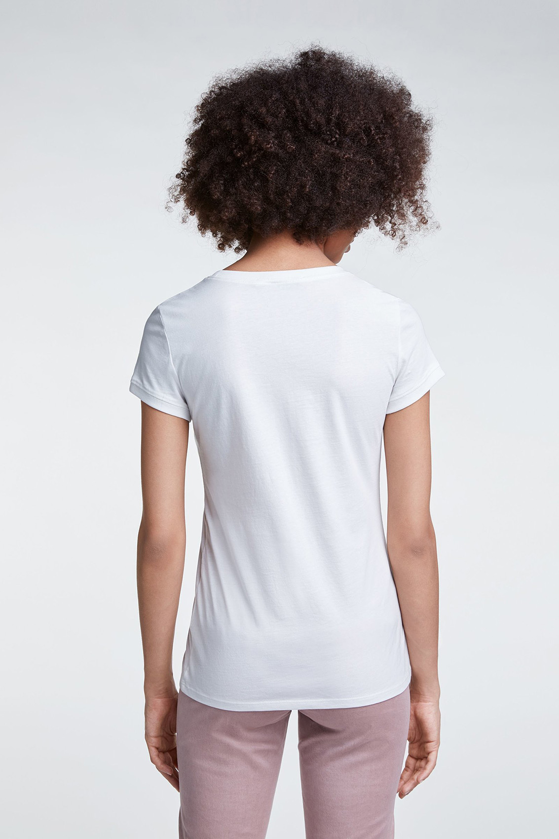Стильная футболка полуприталенного силуэта. Круглый вырез горловины, короткие втачные рукава, принт с металлизированными элементами в виде звезд. Приятный к телу хлопковый материал обеспечивает комфорт.