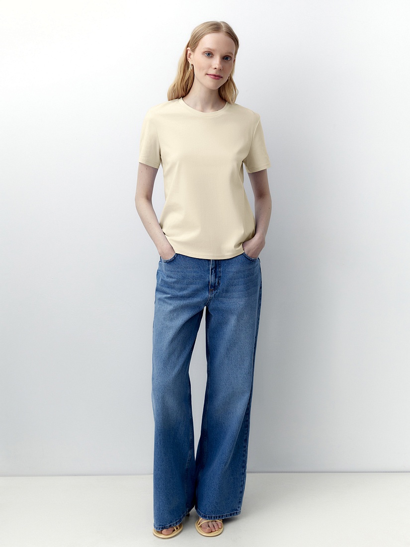 Футболка прямого силуэта свежего лимонного цвета будет прекрасно сочетаться как с денимными изделиями, так и с классическими ансамблями.Имеет шелковистый блеск и не деформируется после стирок, практически не мнется и не выцветает со временем.