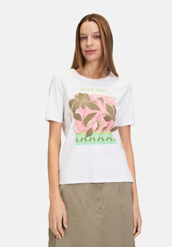 Эта слегка приталенная базовая рубашка с короткими рукавами и круглым вырезом впечатляет эффектным дизайном и сверкающими стразами. Облегающий крой создаёт женственный силуэт. Рубашка идеально подходит для стильного повседневного образа и прекрасно сочетается с различными вещами.