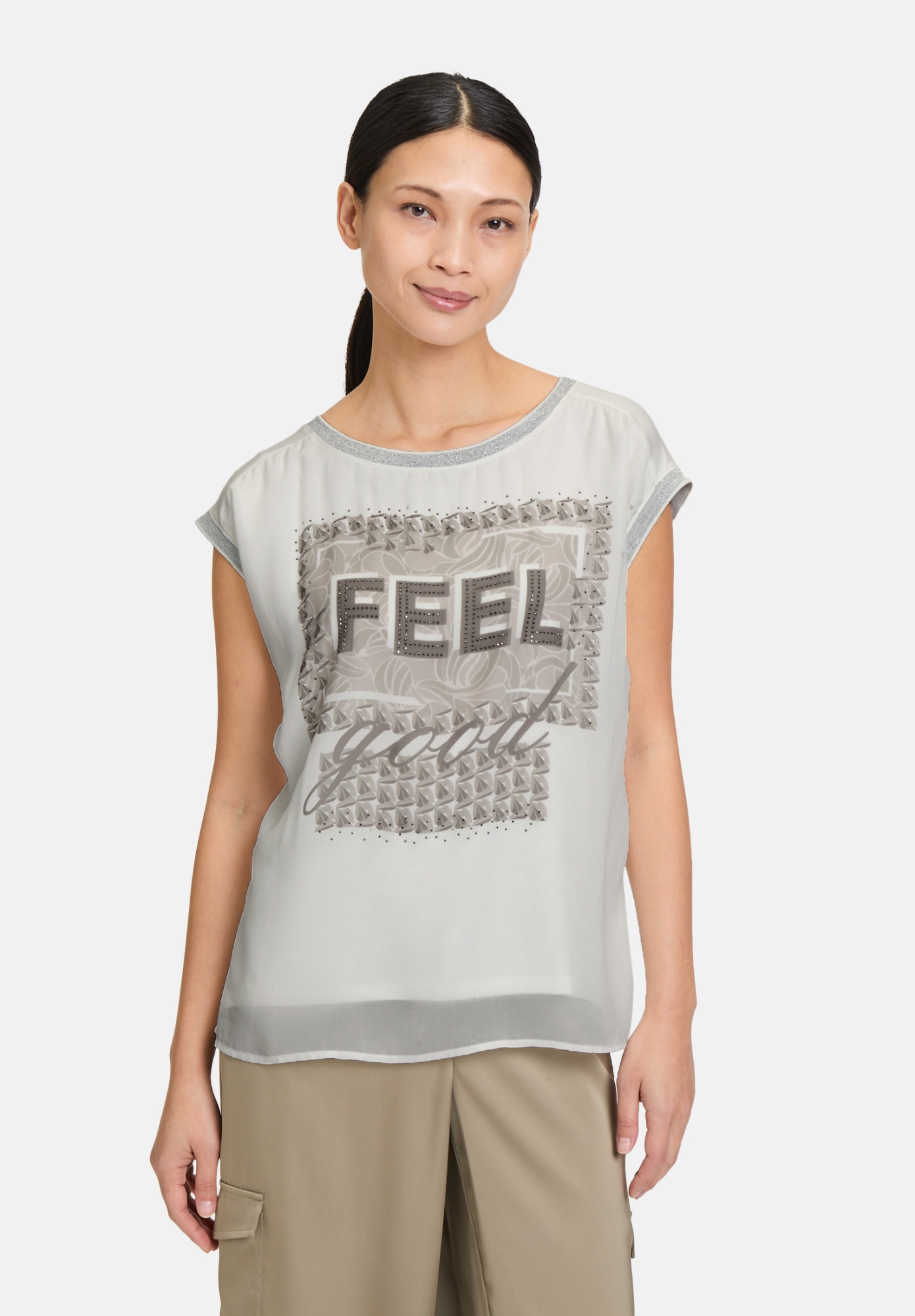 Эта рубашка-блузка гармонично сочетает в себе комфорт и стиль. Сочетание материалов обеспечивает удобную посадку, а стразы и современный дизайн делают рубашку по-настоящему эффектной. Спортивные ребристые манжеты добавляют стильный штрих к повседневному образу, делая её идеальным вариантом для непринуждённых нарядов для отдыха. Универсальный фаворит с модным оттенком!