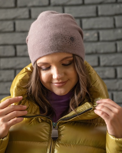 Отличный выбор для городских образов в холодное время года! Эта модель шапки подходит для любого овала лица и сочетается как с классическим пальто, так и с курткой в стиле кэжуал. Элегантность модели придает декор стразами. Мягкий смесовый материал с вискозой и ангорской шерстью обеспечивает сохранение тепла.