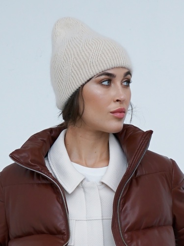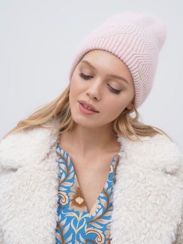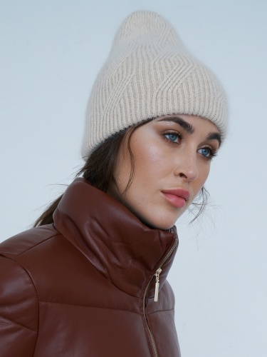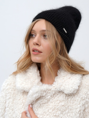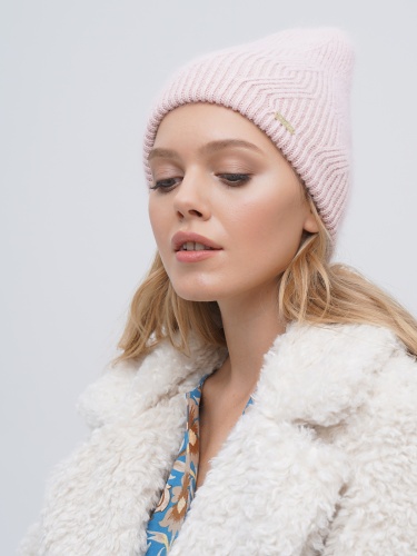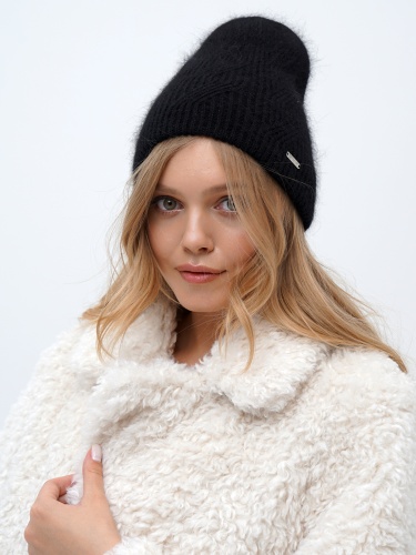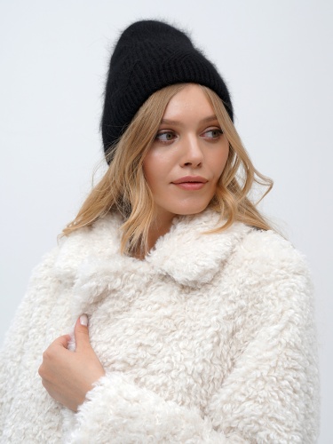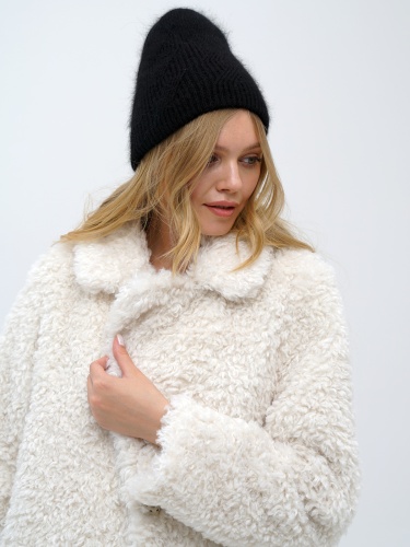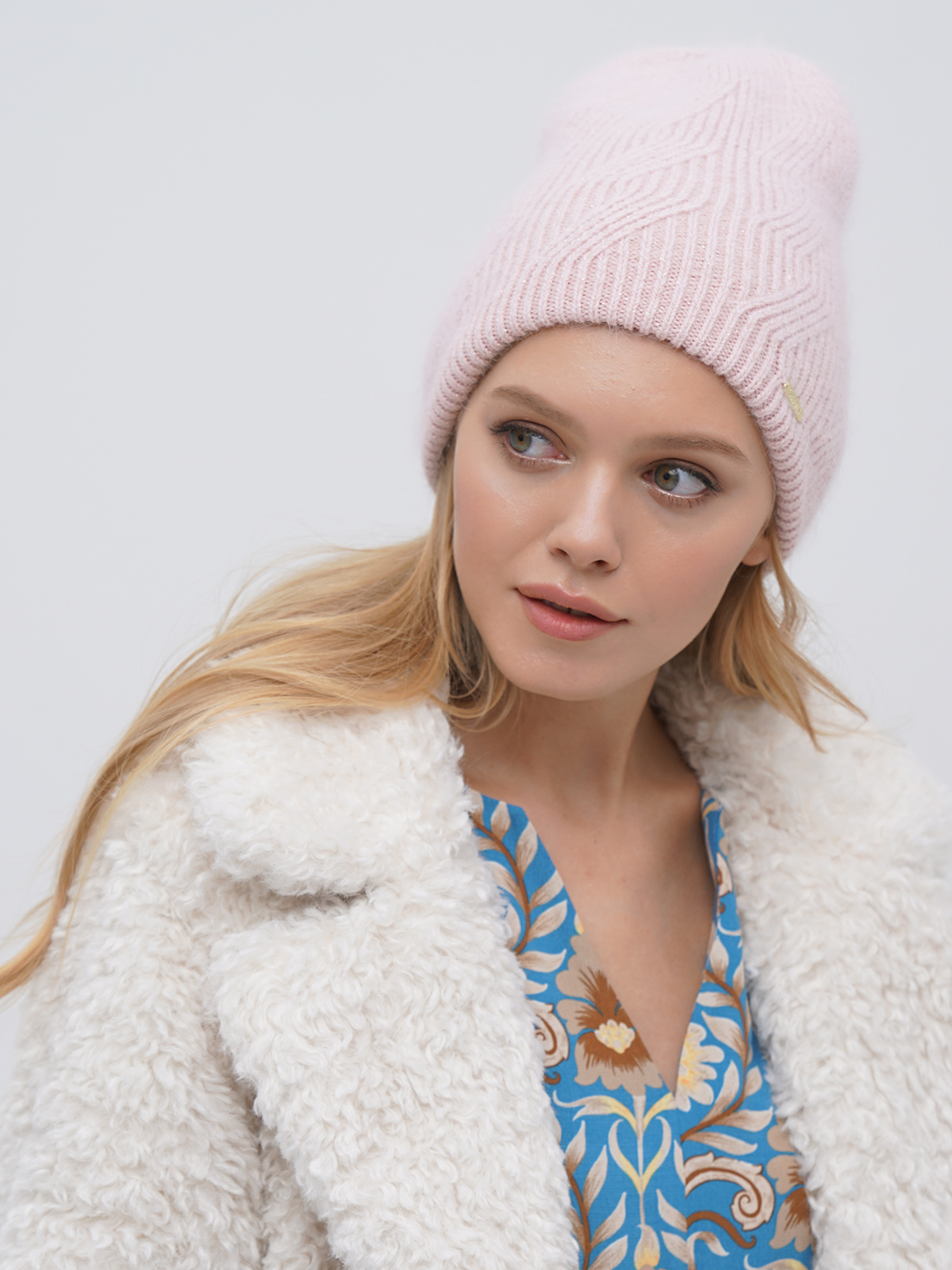 Однотонная шапка-бини из смесовой шерсти ангоры. Трендовая форма, стильный дизайн – шапка дополнит повседневный образ в холодную погоду.