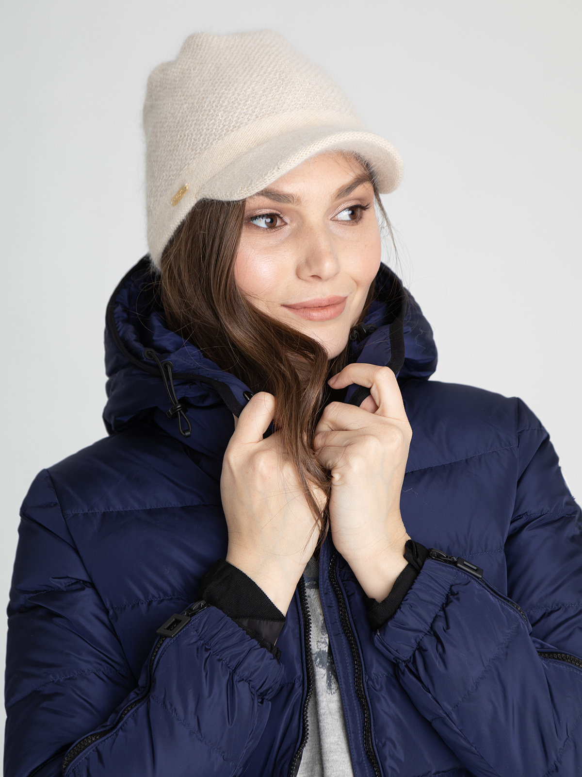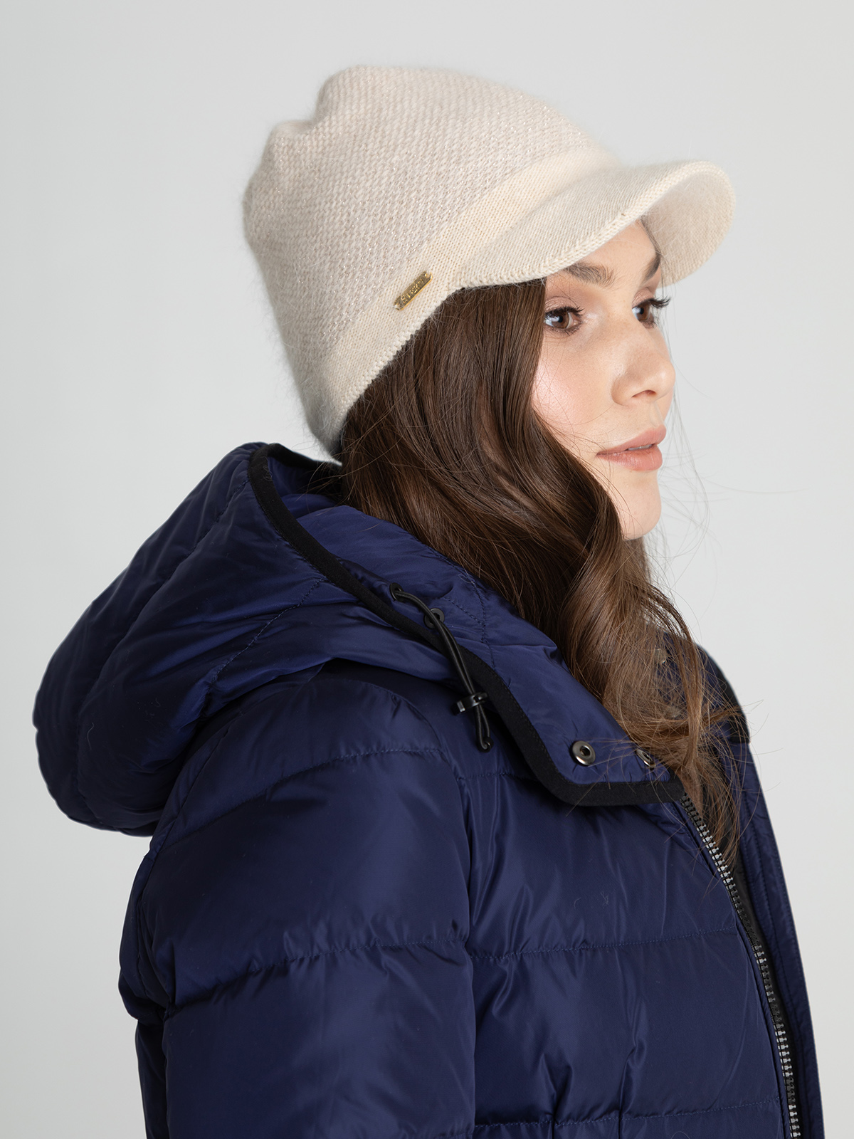 Кепка из смесовой шерсти ангоры хорошо сохраняет тепло, выглядит актуально и отлично завершает стильный образ. Изогнутый козырек, декоративный элемент с логотипом компании.