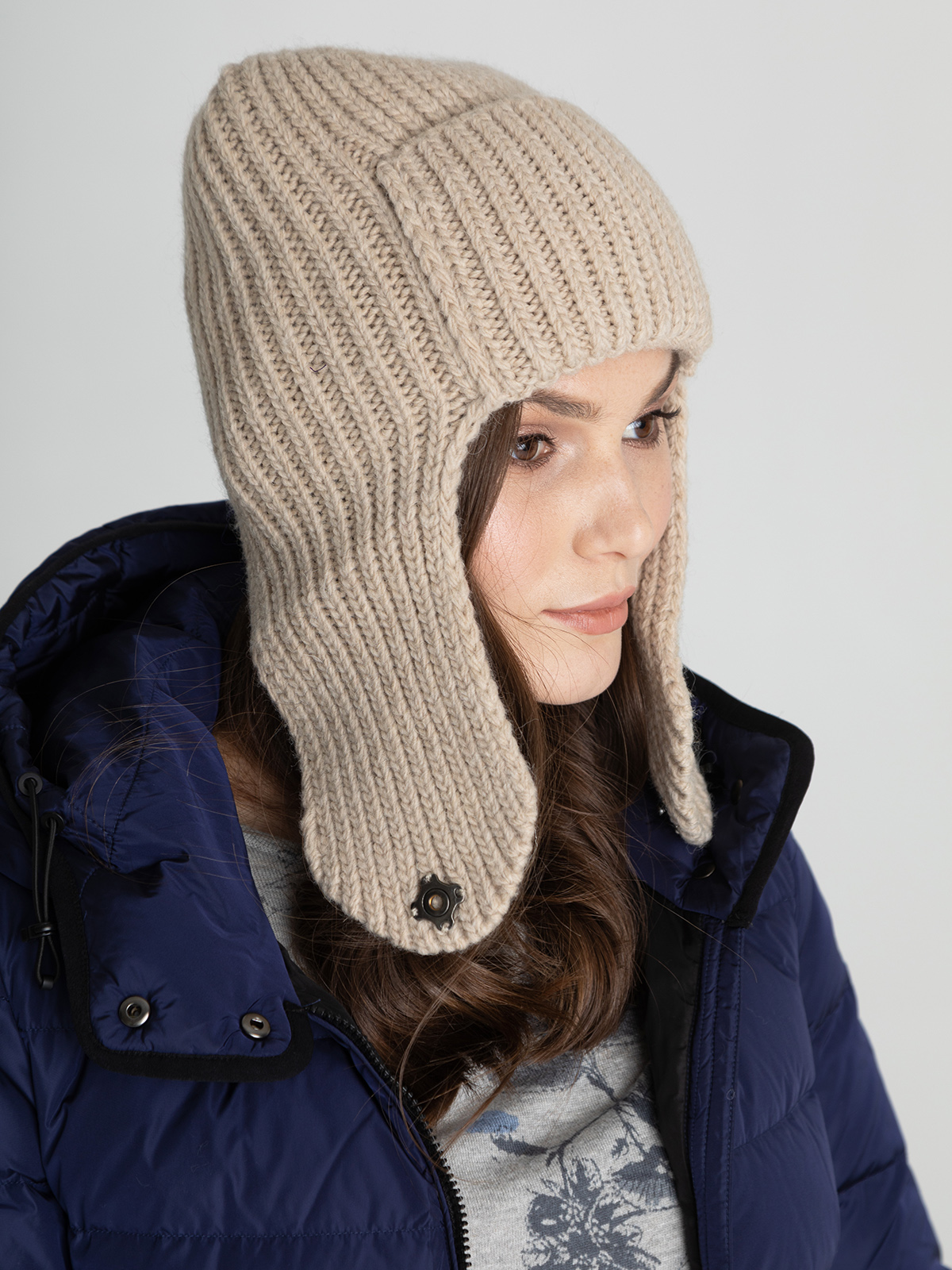 Однотонная вязаная ушанка – тренд сезона! Оригинальный фасон добавит динами образу. Подходит для любого типа лица. Материал из смесовой шерсти с добавлением шерсти альпаки хорошо сохраняет тепло и приятен на ощупь.