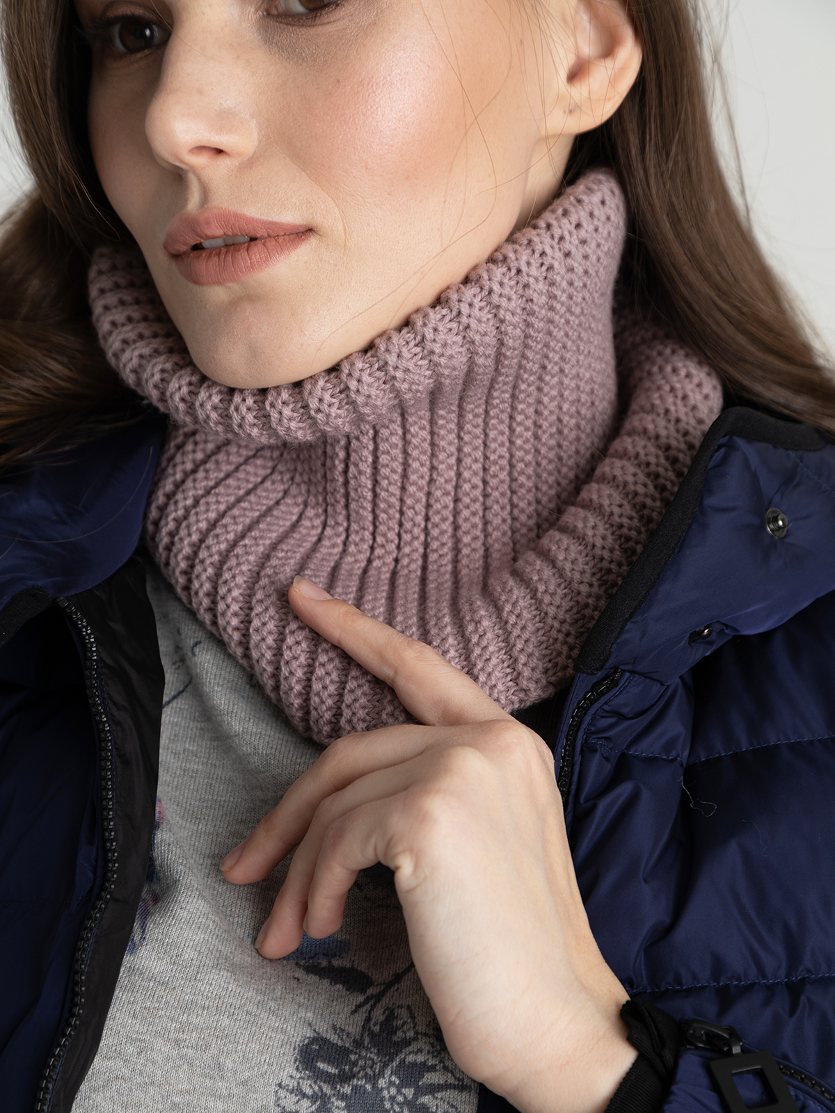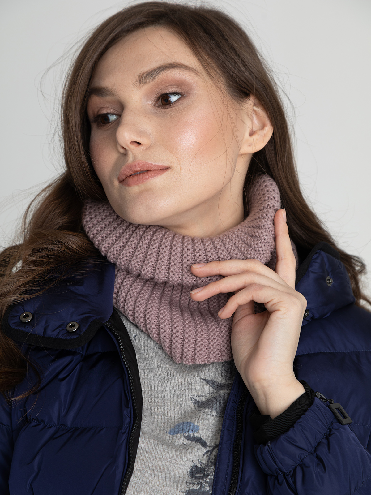 Шарф-снуд в пыльно-розовом оттенке – теплый и комфортный вариант для холодной зимы. Крупная вязка, материал с добавлением шерсти в состав.