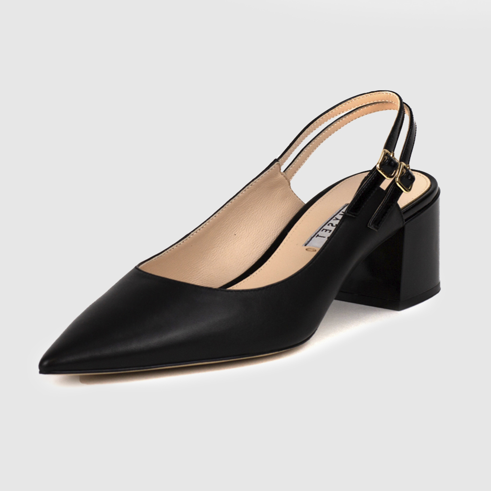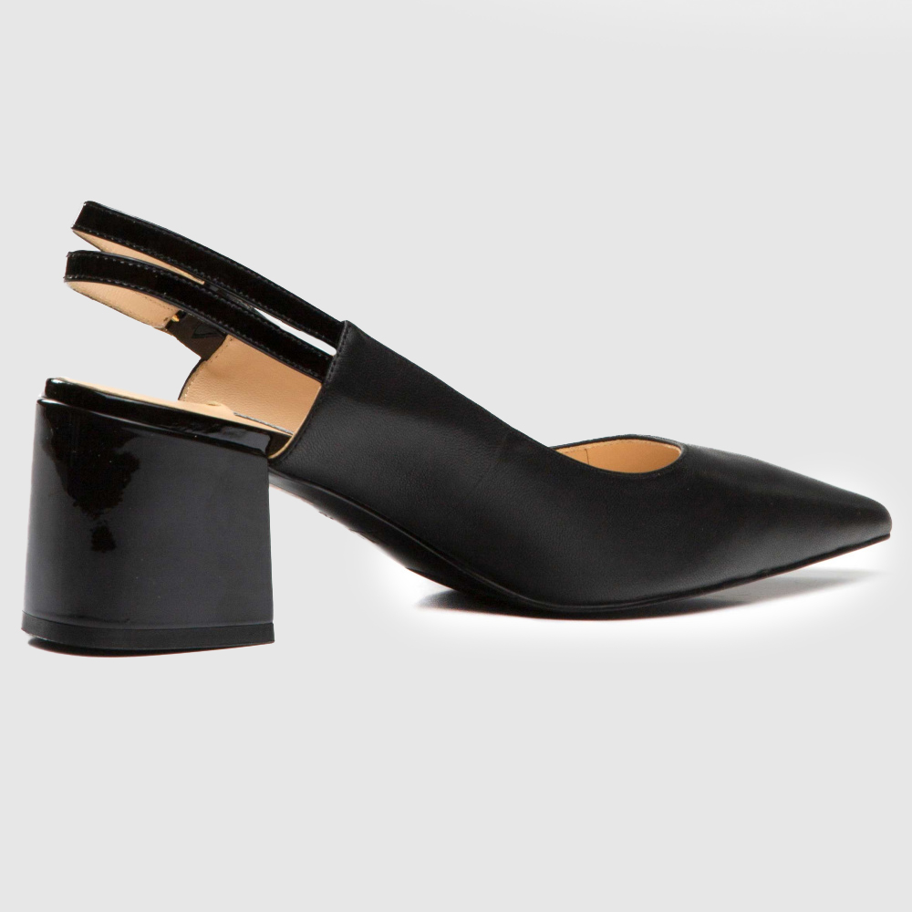 Элегантные туфли из натуральной кожи. Открытая пятка, заостренный нос. Высота каблука: 6 см. Универсальная расцветка дополнит образы различных стилей.