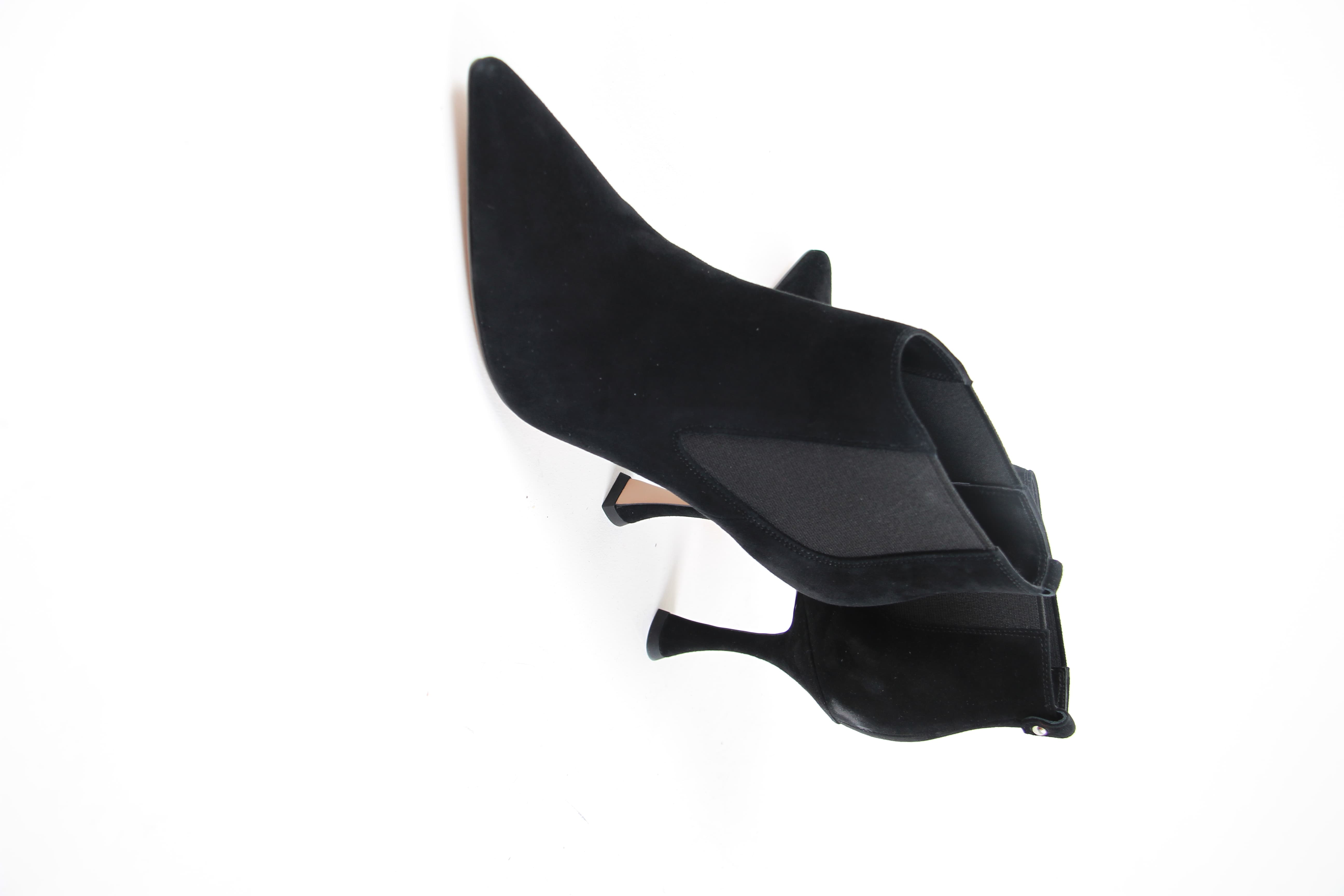 Ботильоны из натуральной замши. Высота каблука: 8,5 см.