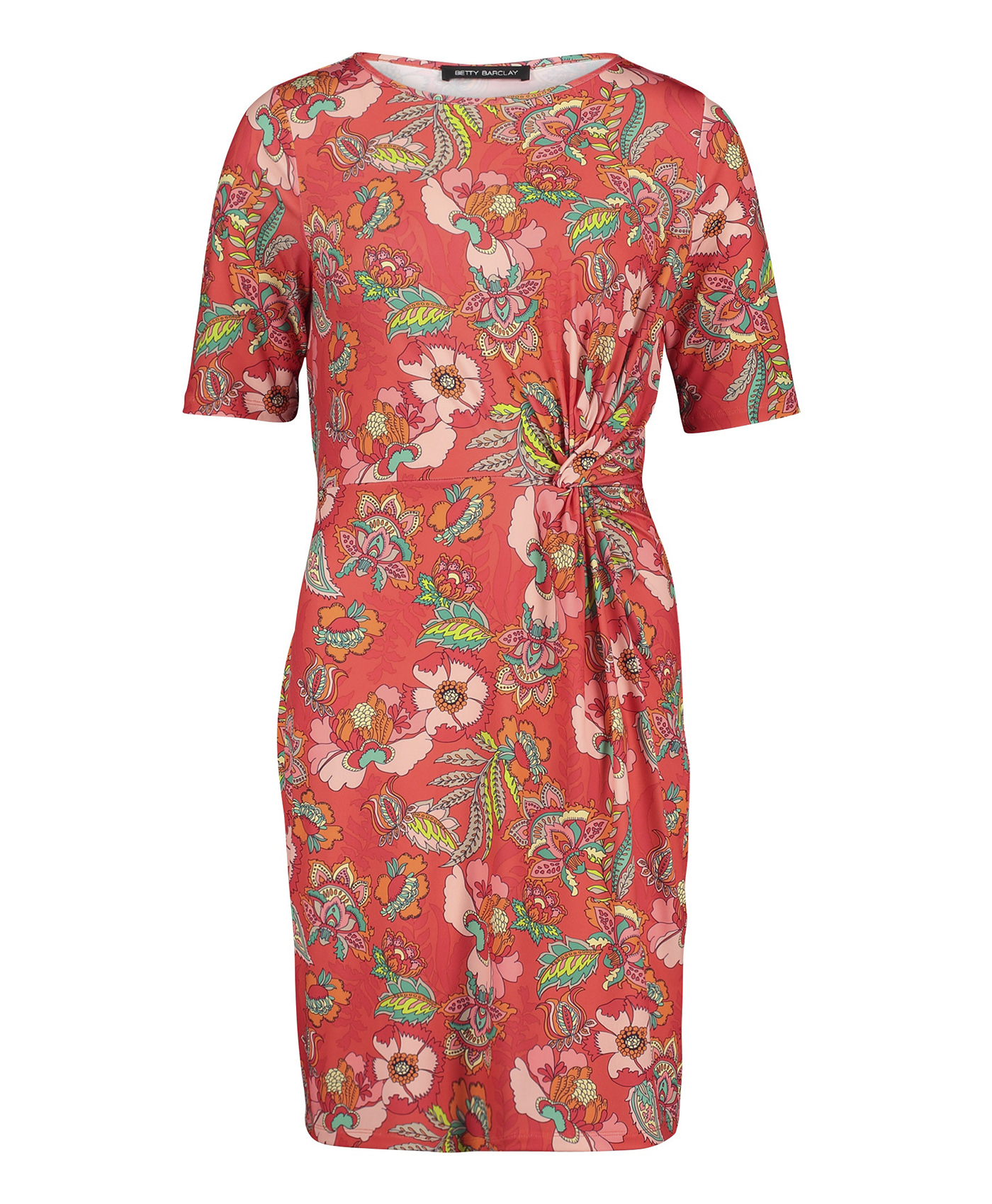 Платье-футляр - невероятно женственная модель! Круглый вырез горловины, рукава 1/2. Трендовый цветочный принт. Завершает дизайн элегантный элемент - складка в районе талии. Платье выглядит шикарно как с блейзером, так и с джинсовой курткой.