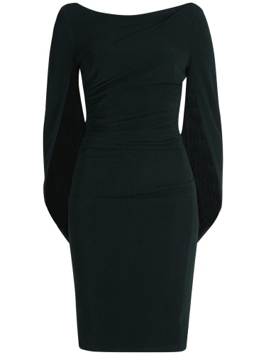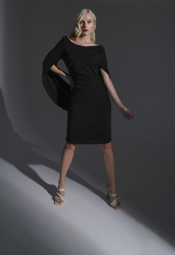 На сайте указаны российские размеры. Оригинальное платье с необычным кроем рукава обязательно сделает вас центром внимания на любом празднике или официальном мероприятии. Широкая круглая горловина и глубокий V-образный вырез на спине. Длина платья до колена.