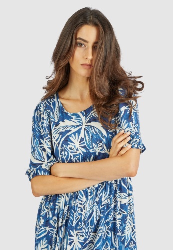 Это платье из вискозы прямого кроя особенно летнее благодаря эффектному цветочному принту. Застежка на пуговицы на шее придает изысканный вид. Эффекты ряби привлекают внимание.