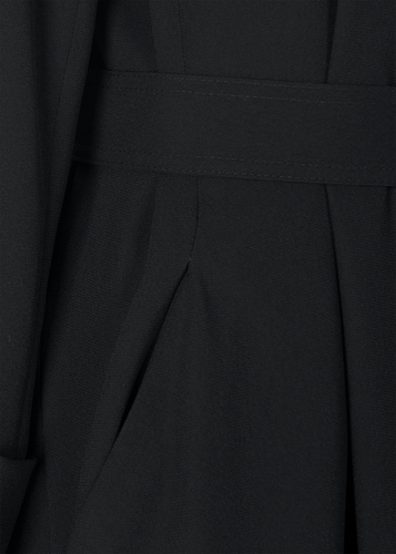 Платье миди из техно-атласа будет стильно и элегантно сопровождать свою обладательницу в течение всего дня. Небольшие акценты, такие как слегка раструбные рукава длиной три четверти, тканевый пояс с красивым металлическим элементом и струящаяся юбка, расставляют акценты.