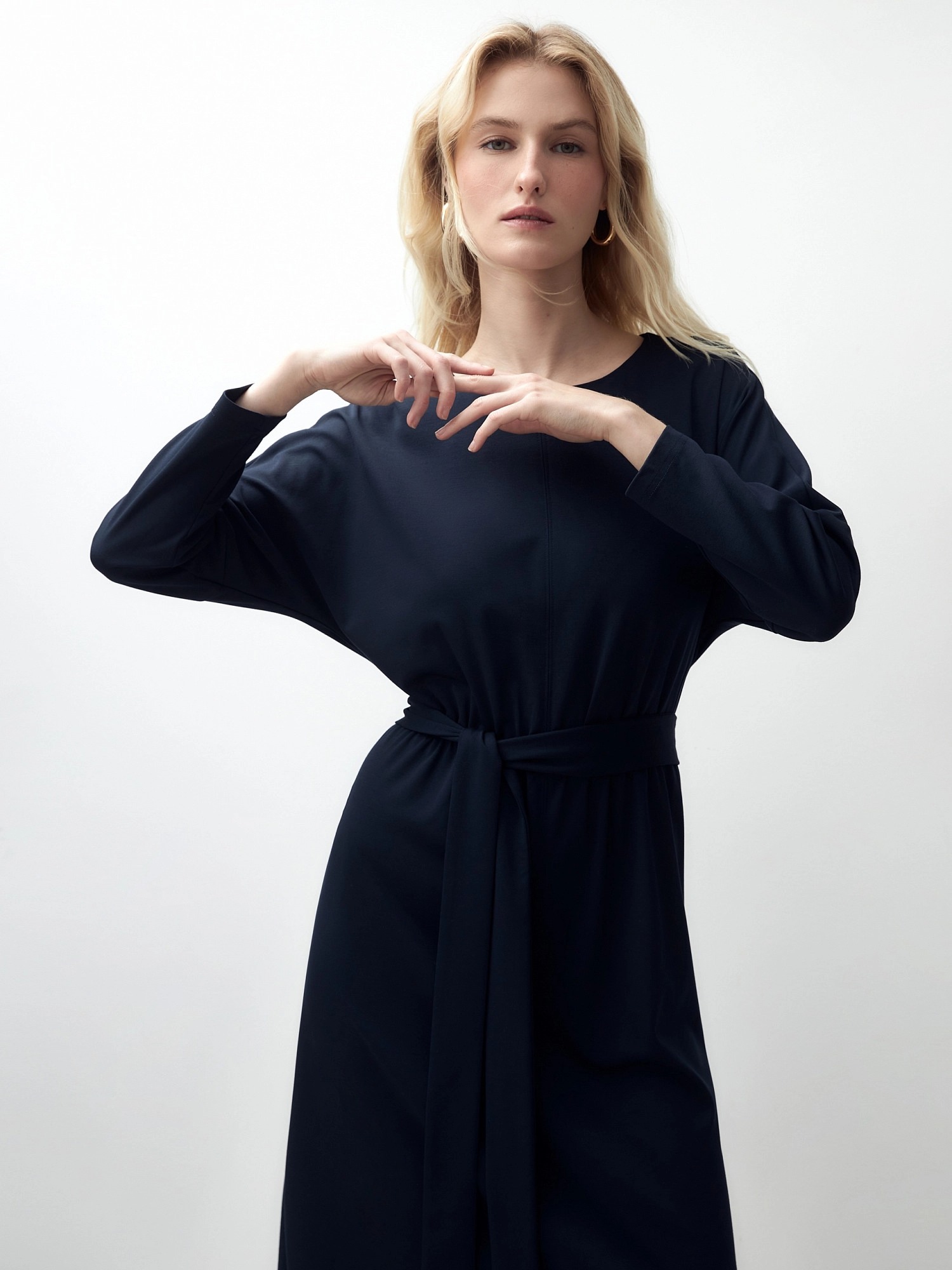 Платье из мягкого и в то же время плотного трикотажа, на эластичном поясе даст вам ощущение свободы движения и комфорта.