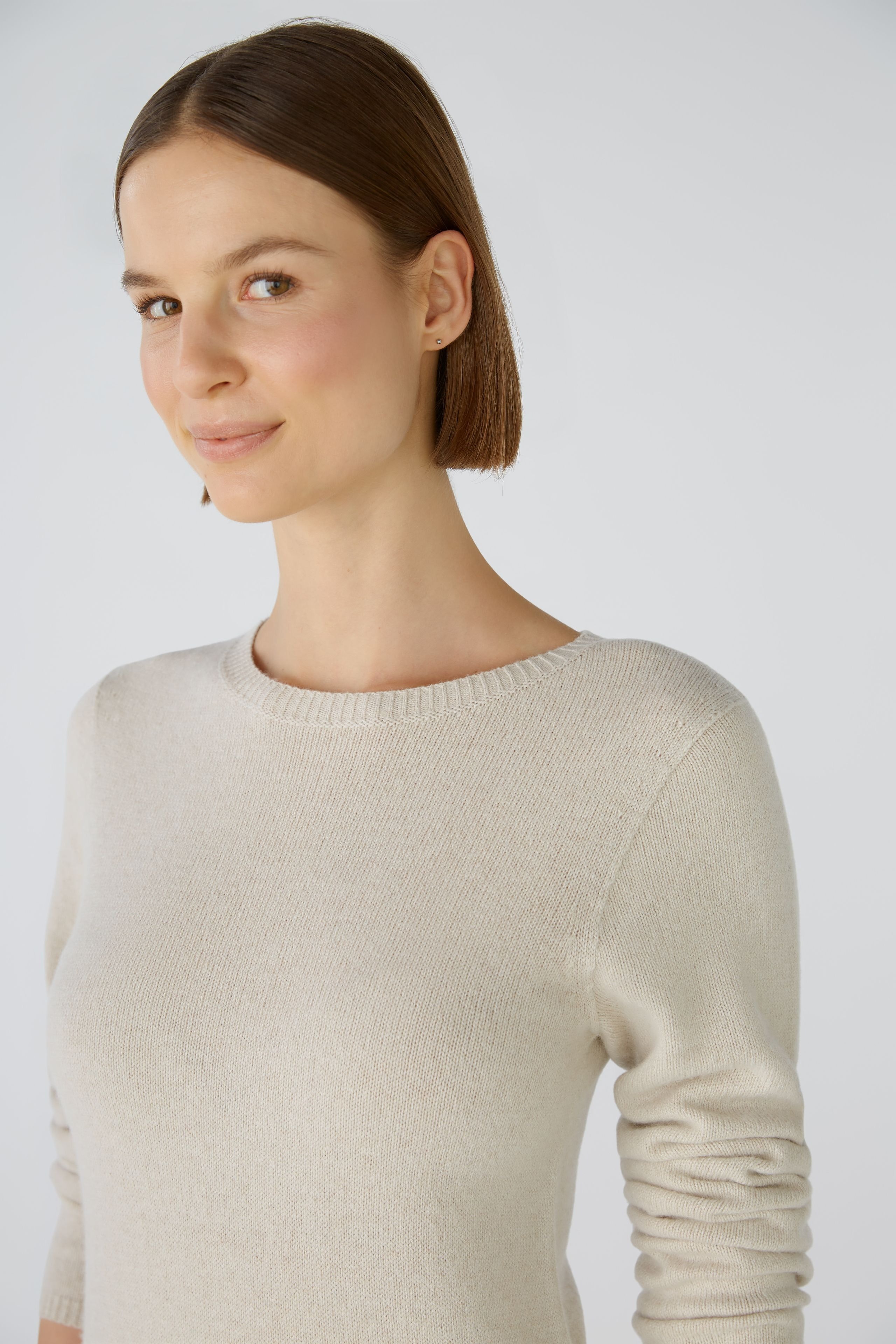 Трикотажное платье бесшовной вязки. Приталенный топ, слегка расклешенная юбка, длина до колена. Круглый вырез. Удлиненный рукав. Узкие ребристые манжеты на воротнике, рукавах и подоле. Длина для размера 42 - 106 см.
