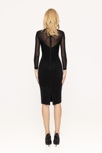 Платье миди с высоким воротником и люрексом, с длинными рукавами, облегающий дизайн, застежка-молния.