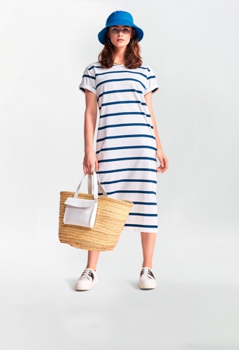 Повседневное платье миди в стиле Спортшик в полоску из чистого хлопка.