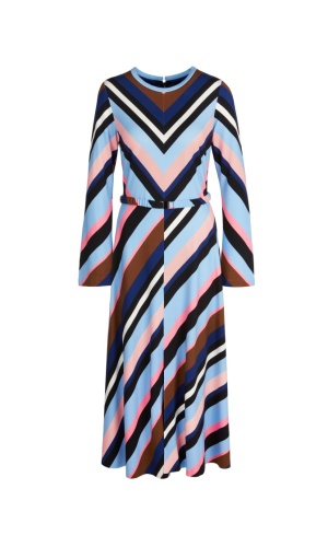 Платье в трендовом геометрическом принте. Круглый вырез горловины, расширенные книзу рукава полной длины. Юбка миди А-силуэта. Приятный к телу маретиал из вискозной смеси.