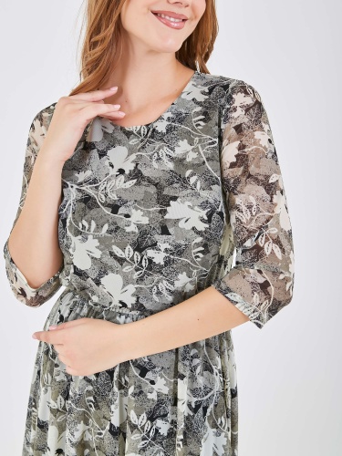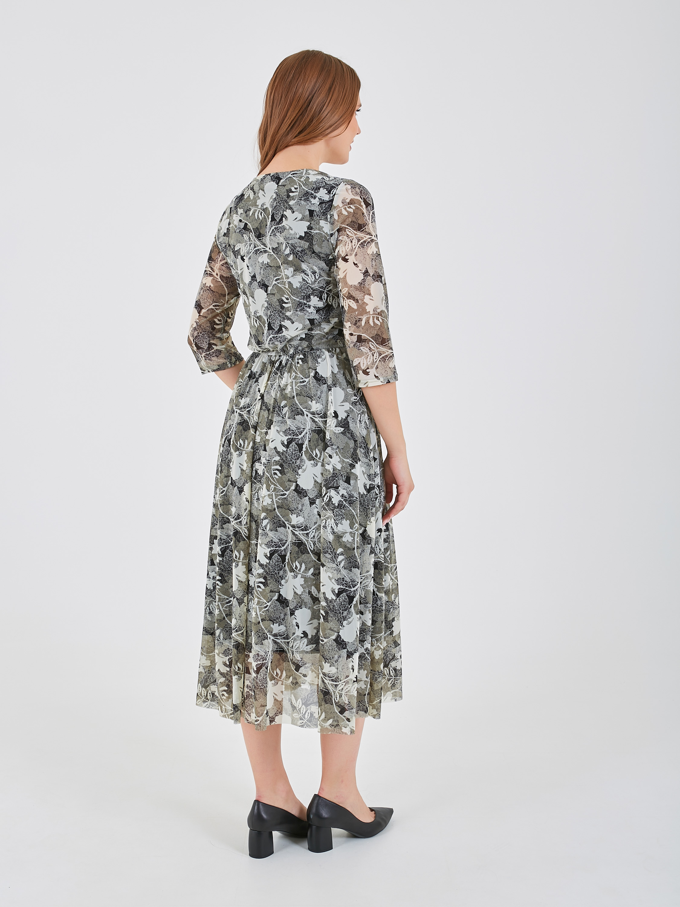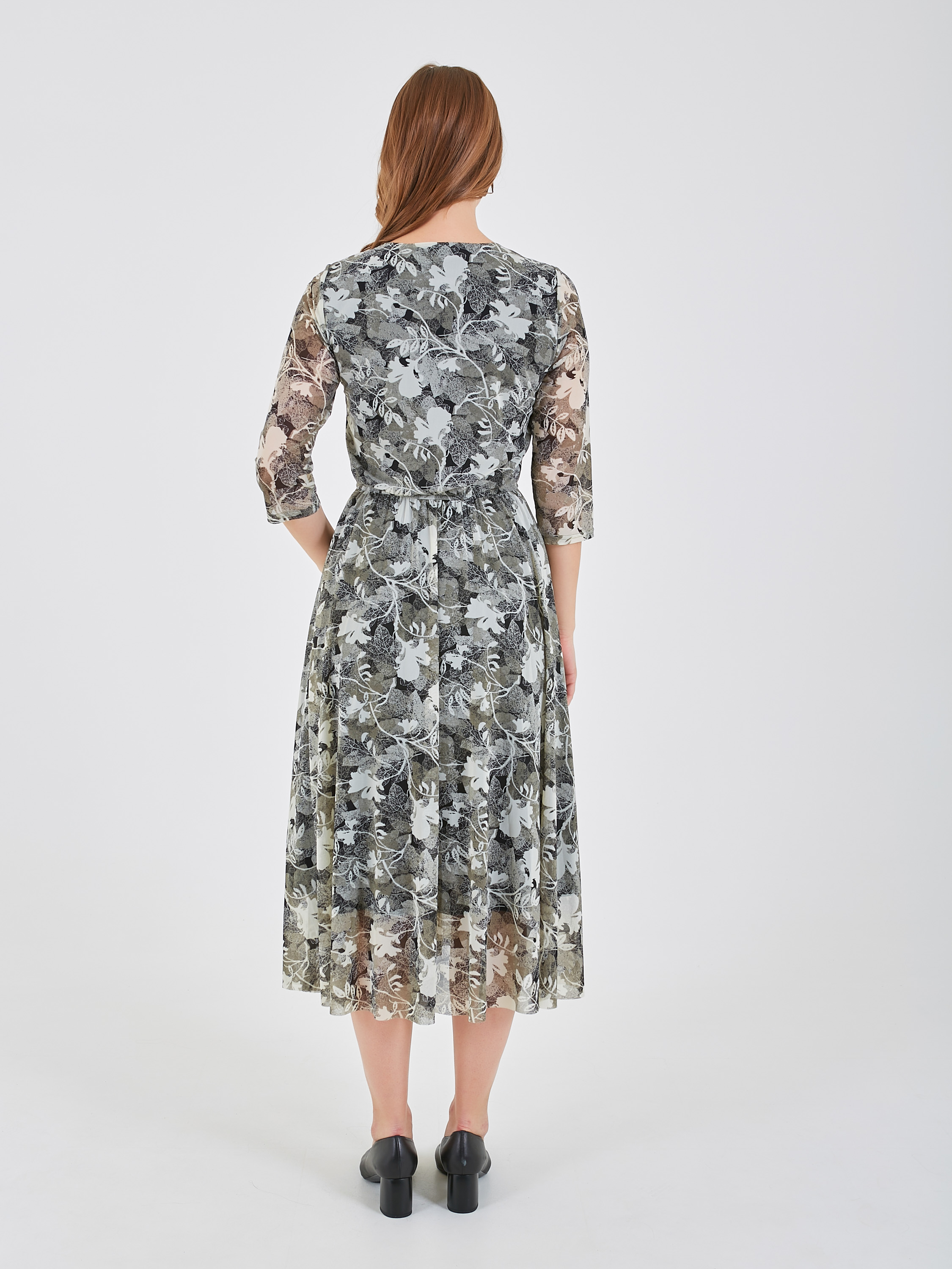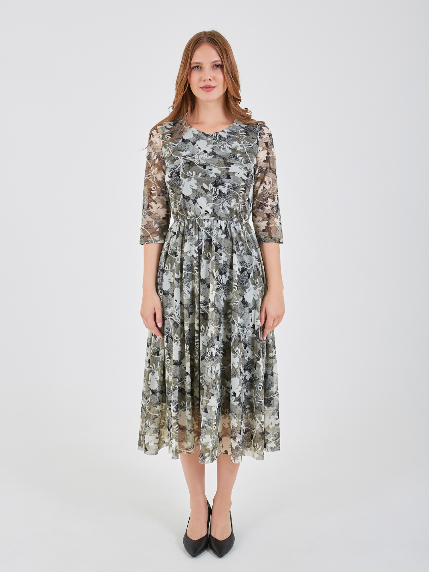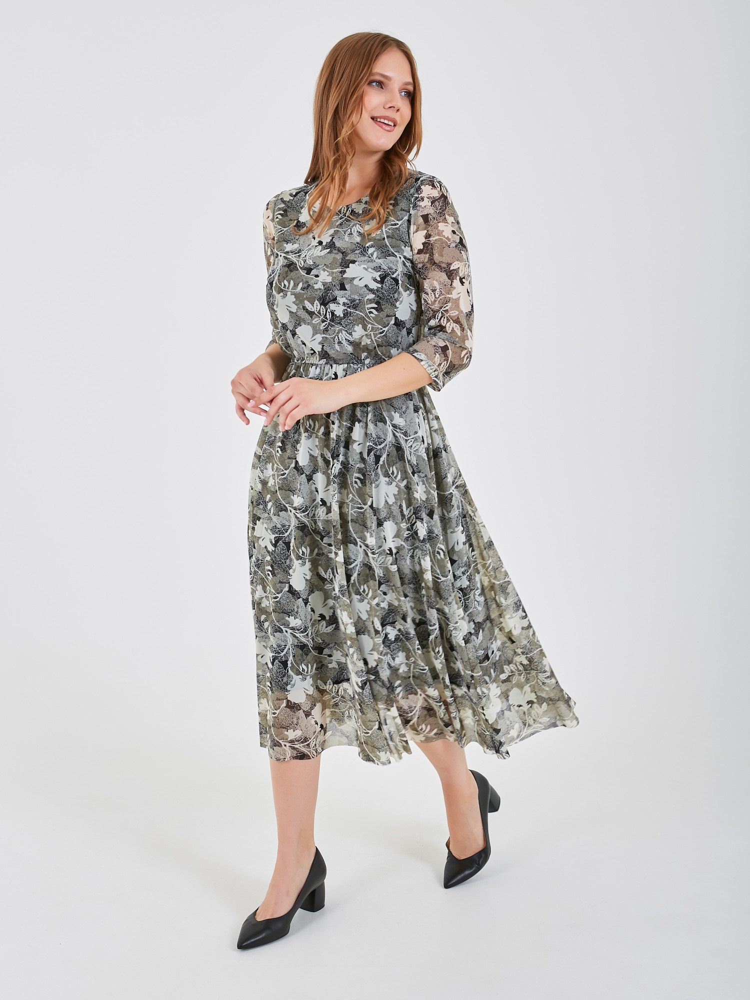 Лёгкое романтичное платье травяного оттенка. Рукав сетчатый 3/4. Коллекция Осень-Зима 2024-2025. Капсула "Осенний марафон".