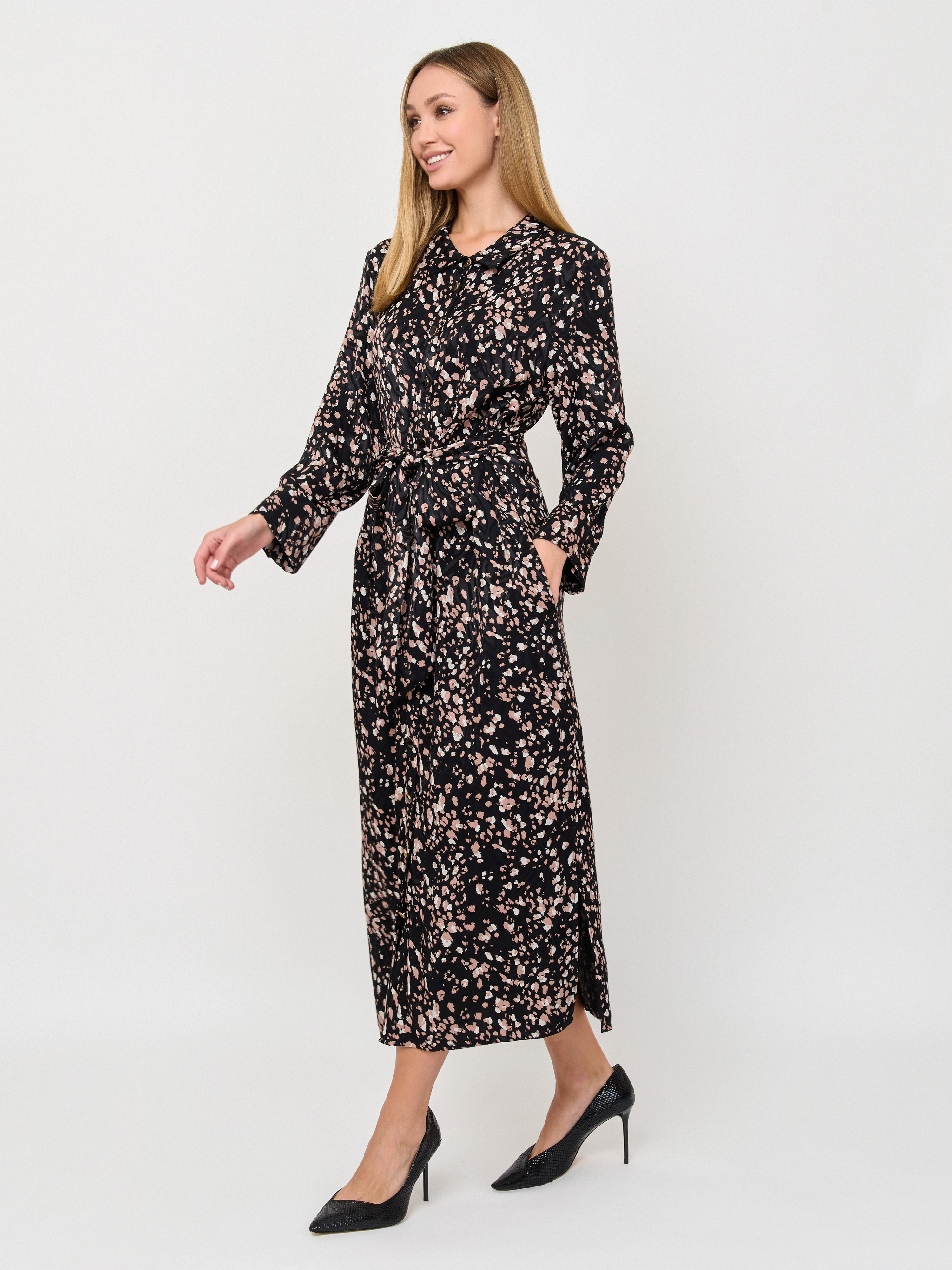 Нарядное платье с застёжкой на пуговицы по переду до линии талии. В комплекте пояс в цвет платья. Рукав длинный с манжетами. Длина миди.